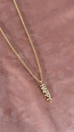 Изящная цепочка с подвеской-надписью «HAPPY». Лаконичный, но заметный акцент — напоминание о важности положительных эмоций и внутренней гармонии. Позолоченная цепочка отлично сочетается с повседневной одеждой, добавляя чуть больше искрящегося настроения в ваш образ.