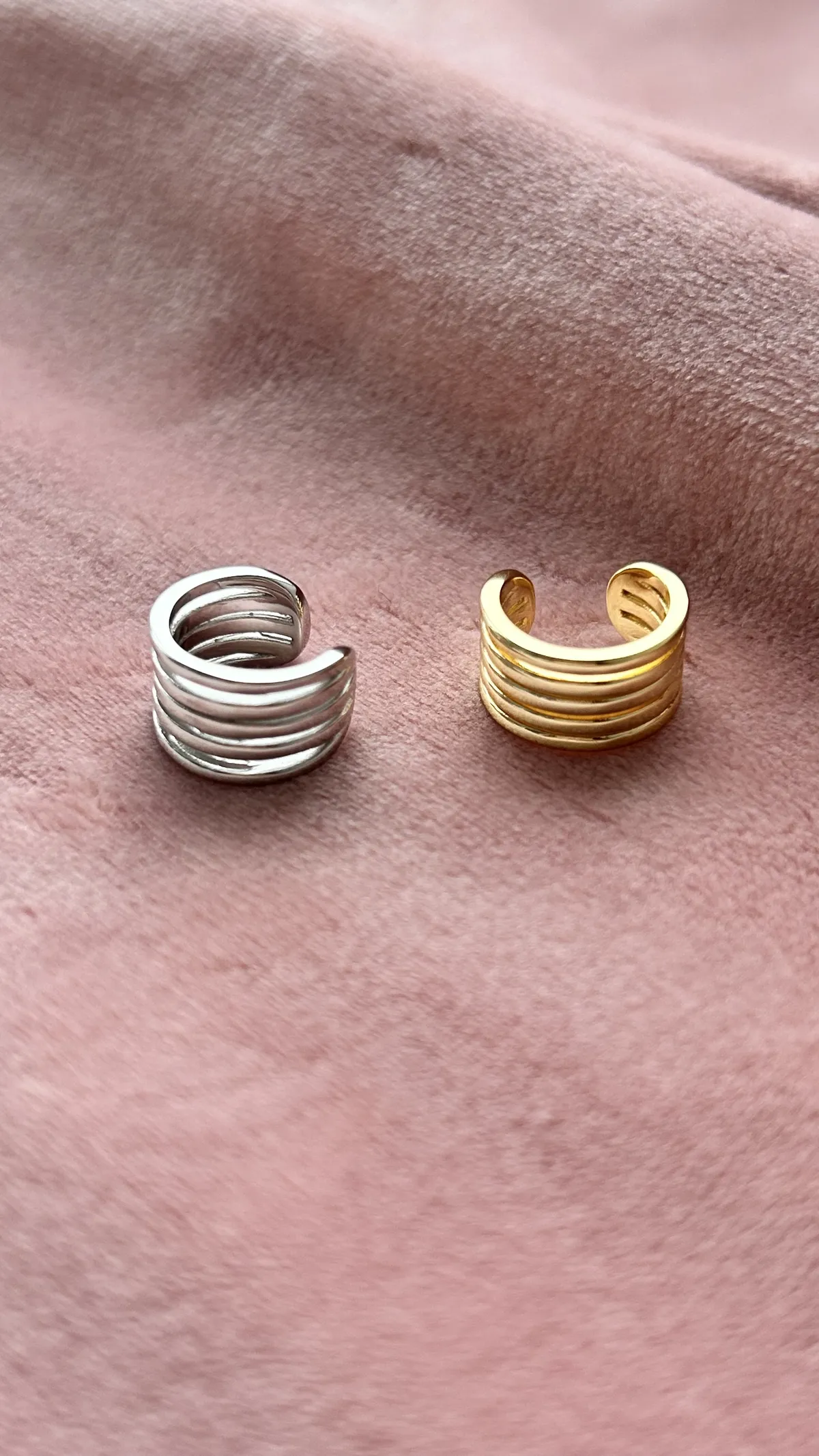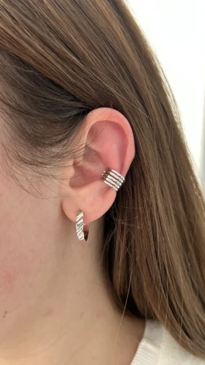 Современный кафф с эффектом многослойности — стильный акцент для вашего образа без необходимости прокола уха. Лаконичные параллельные полоски делают украшение универсальным и динамичным, подчёркивают вкус к актуальным деталям. Такой кафф легко сочетать с другими украшениями или носить соло, добавляя индивидуальности и немного дерзкой изысканности вашему стилю.