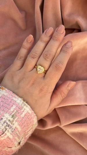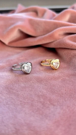 Элегантное кольцо с сердцем — сверкающий прозрачный камень, обрамлённый сияющей оправой. Изысканный дизайн с мотивом любви и нежности: такой аксессуар станет не только украшением, но и тёплым талисманом. Универсальный вариант для романтичных натур, украшение для вдохновения и счастливых моментов — как каждый день, так и для особого случая.