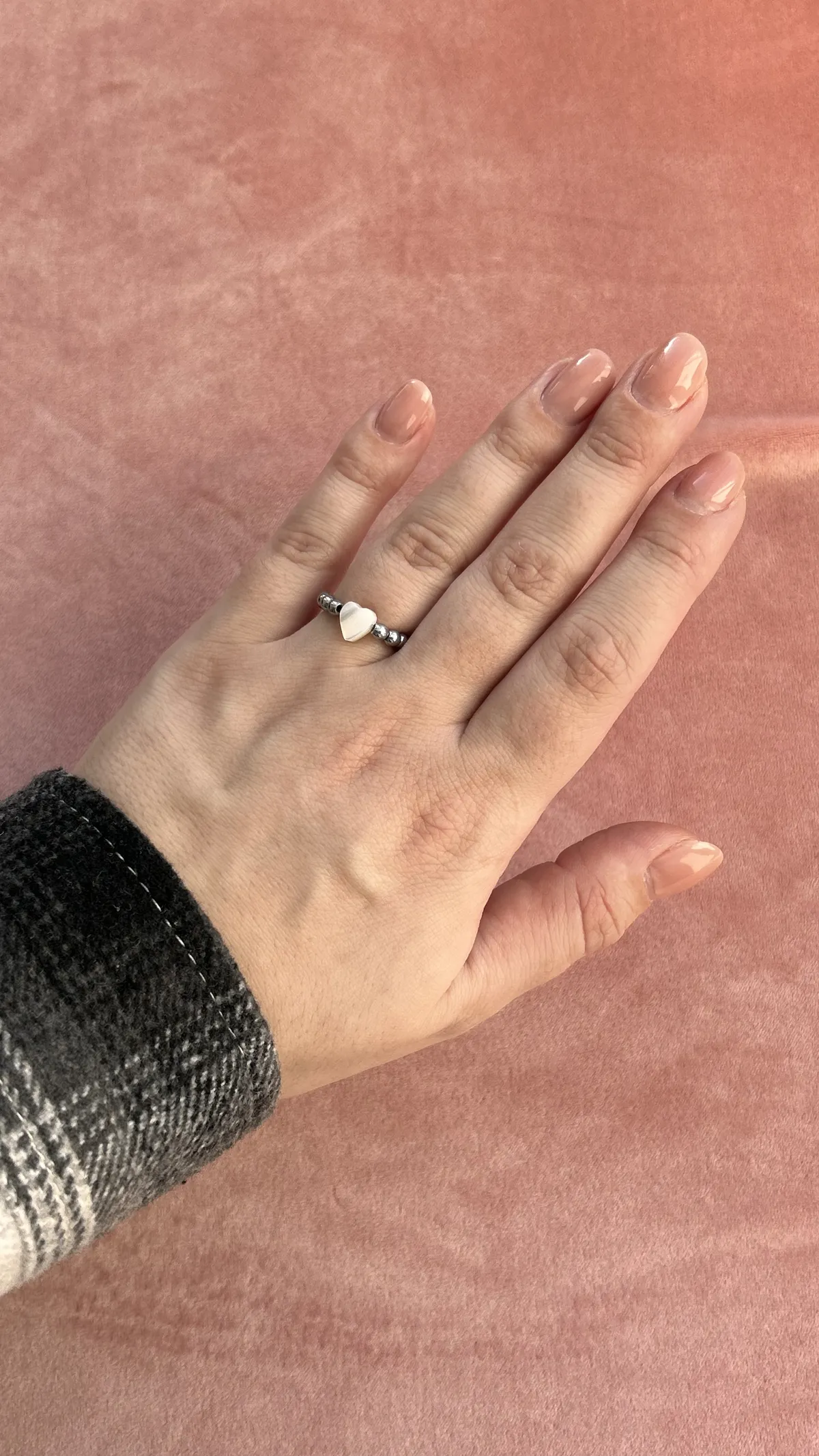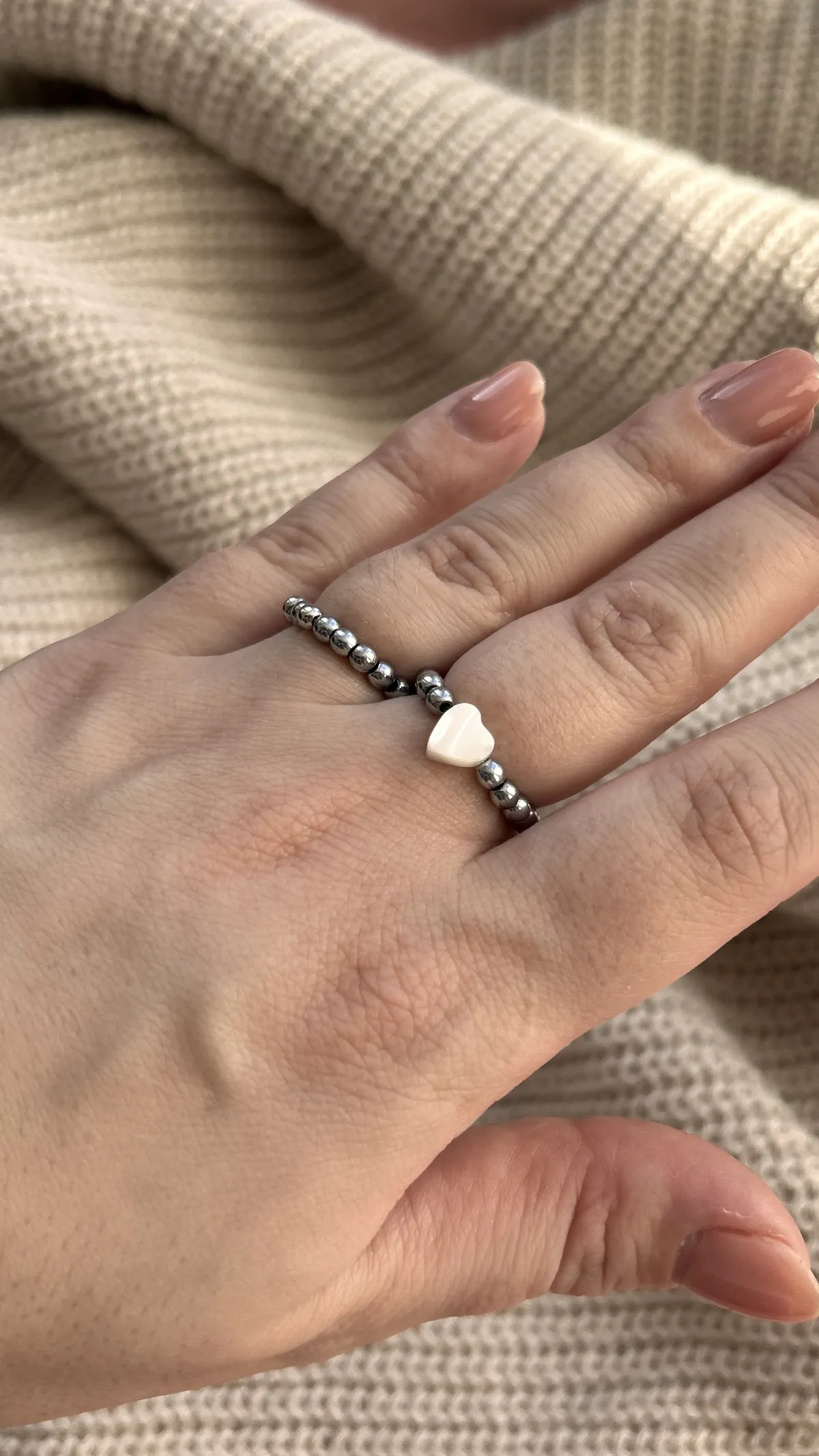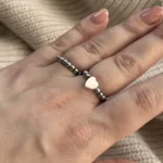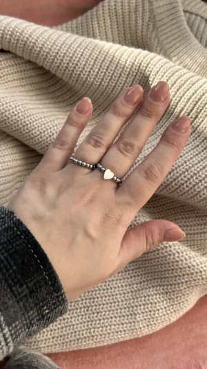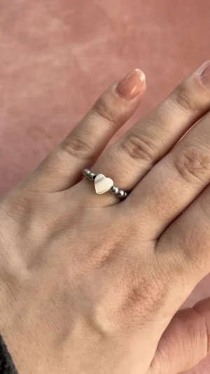 Лёгкое колечко из серебристых бусин с перламутровым сердцем — символом нежности и внимания к деталям. Прекрасно подойдет для ежедневной носки, сочетаясь с любым стилем и даря немного романтики каждому дню. Можно дополнять другими колечками.