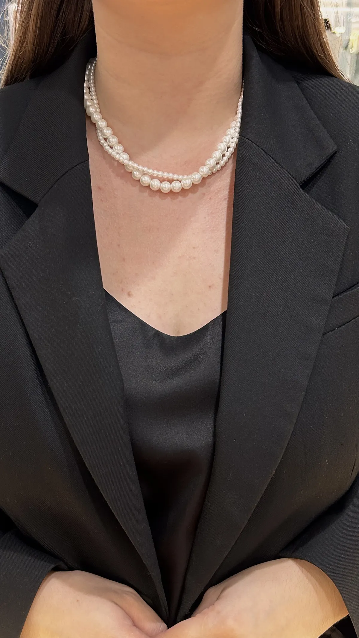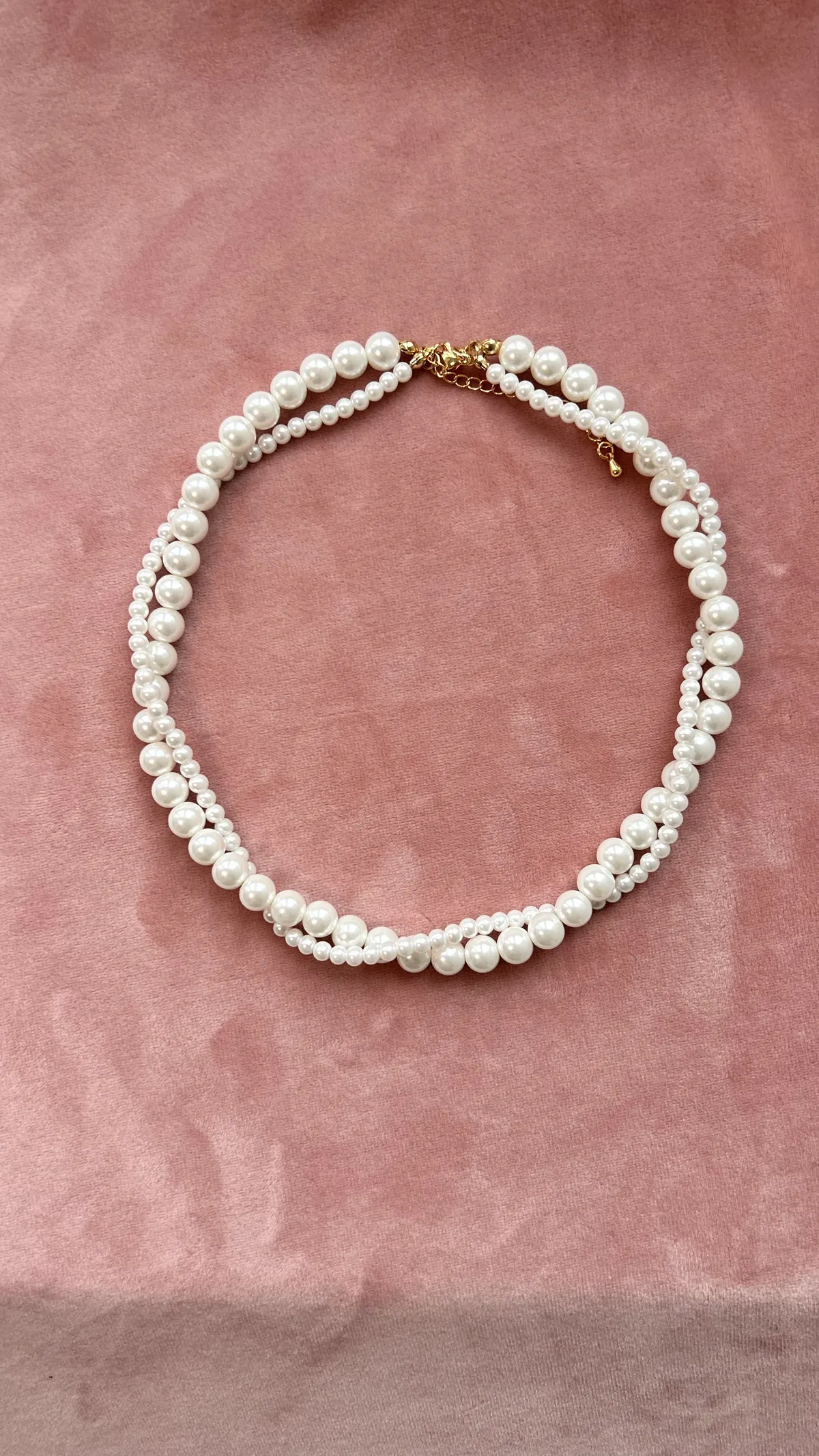 Эффектное колье из жемчуга майорка, выполненное в виде двух нитей: одна из крупных бусин, другая из изящных мелких. Их переплетение создаёт необычный и современный акцент, сохраняя при этом всю утончённость классических жемчужных украшений.