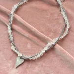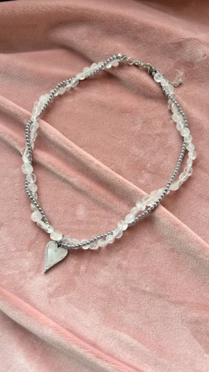 Колье из горного хрусталя, гематита и сердце с перламутром