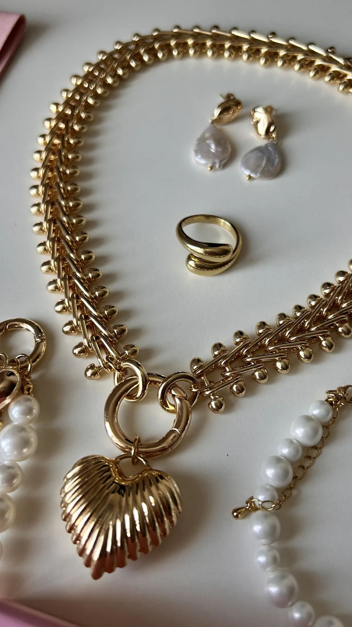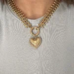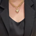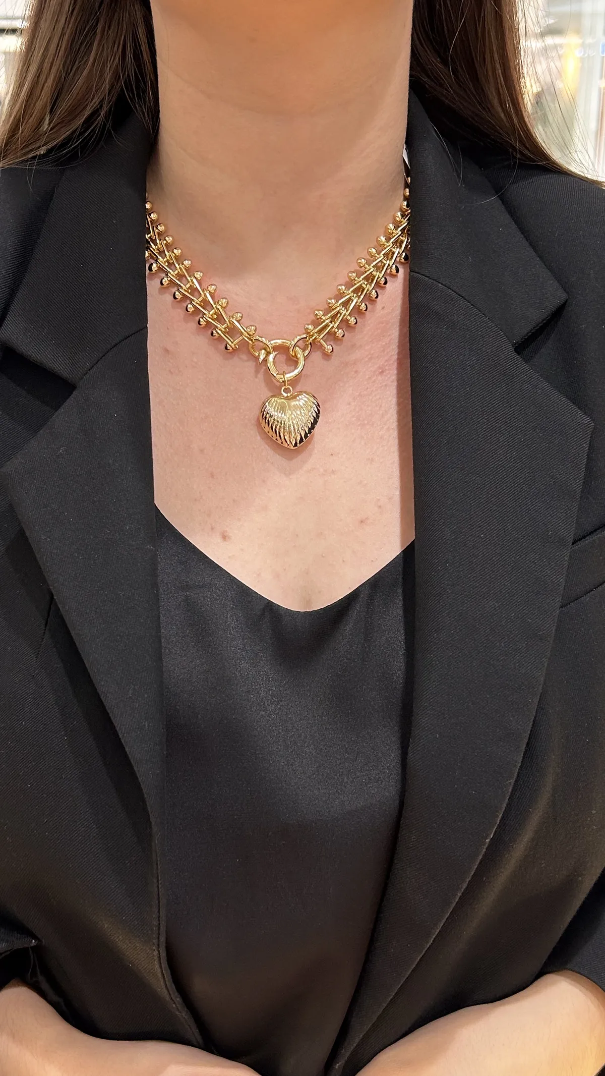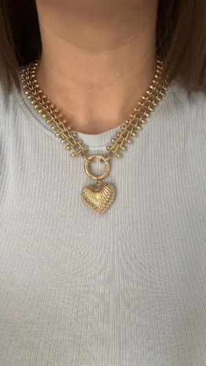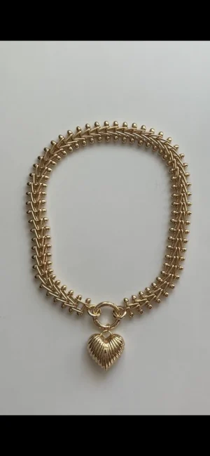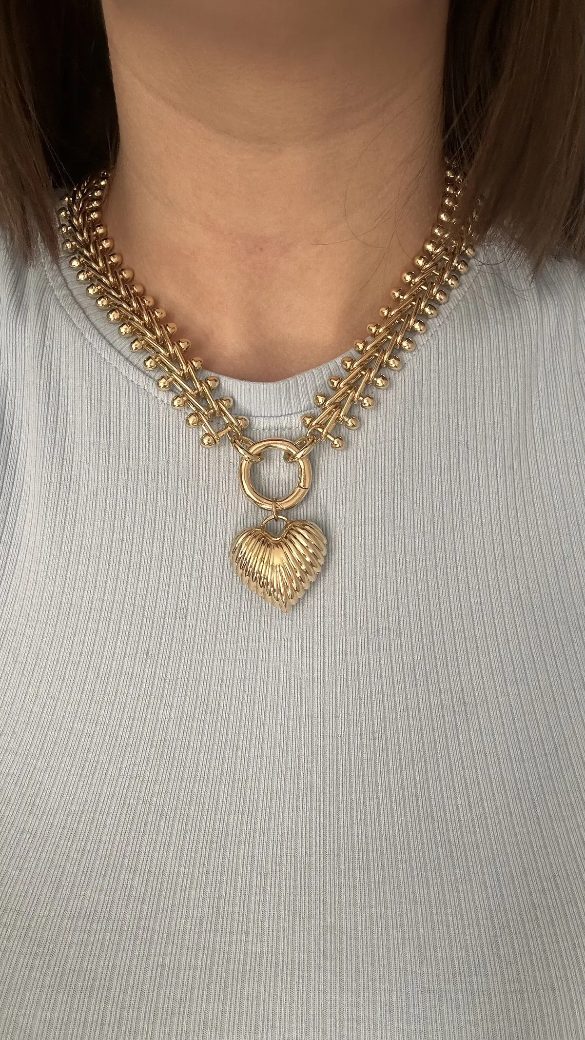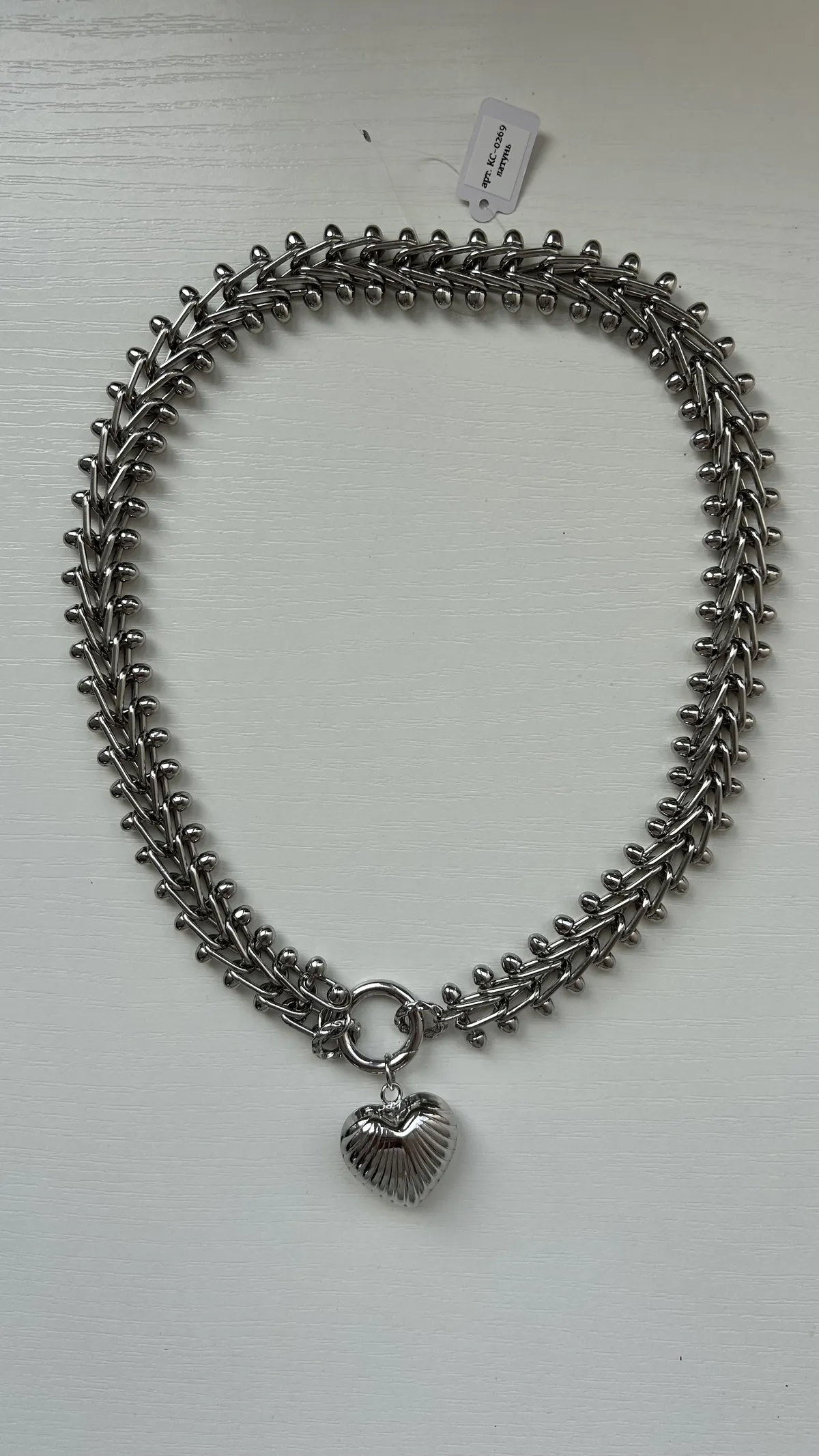 Колье из крупной цепи и ребристое сердце