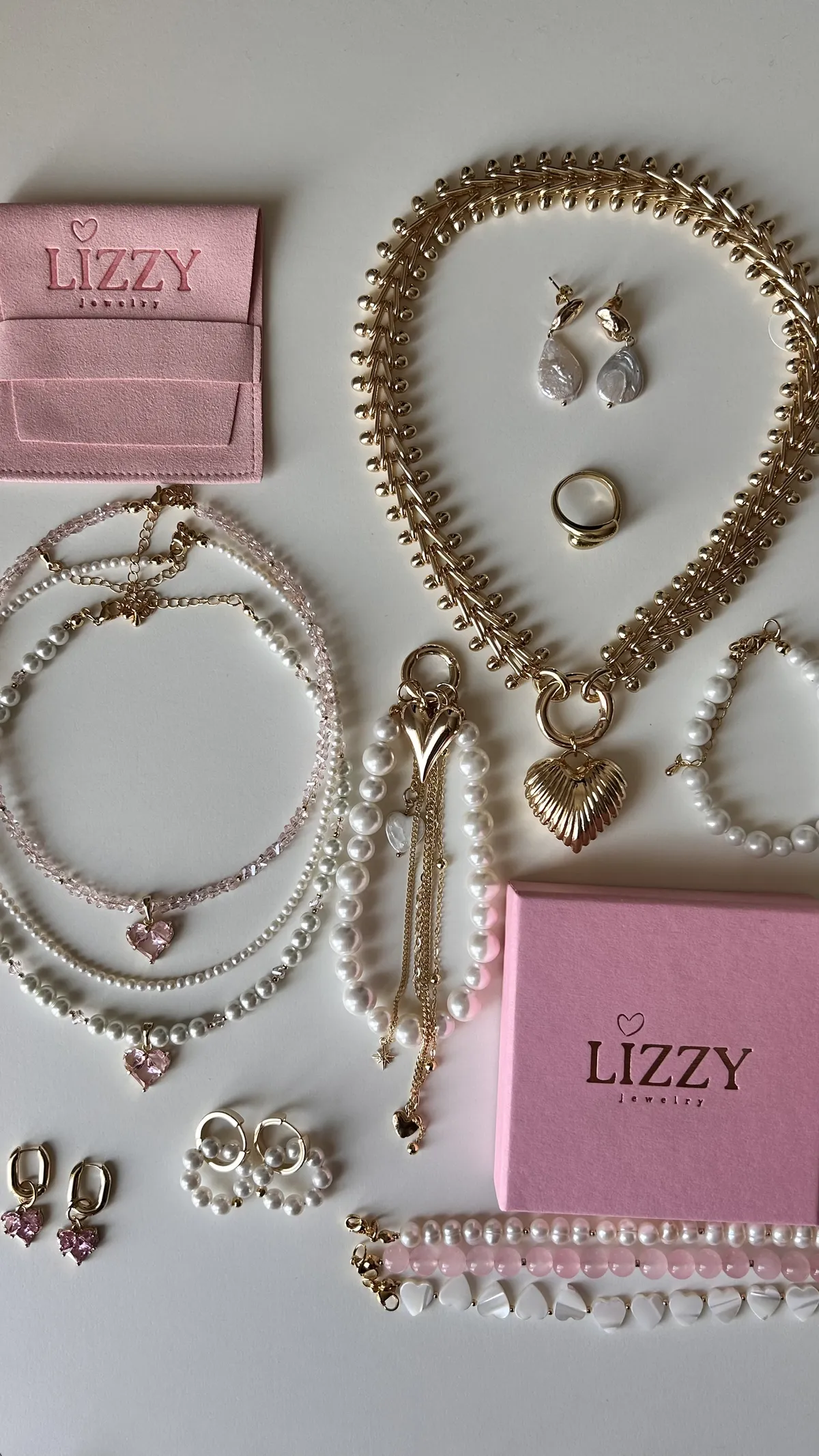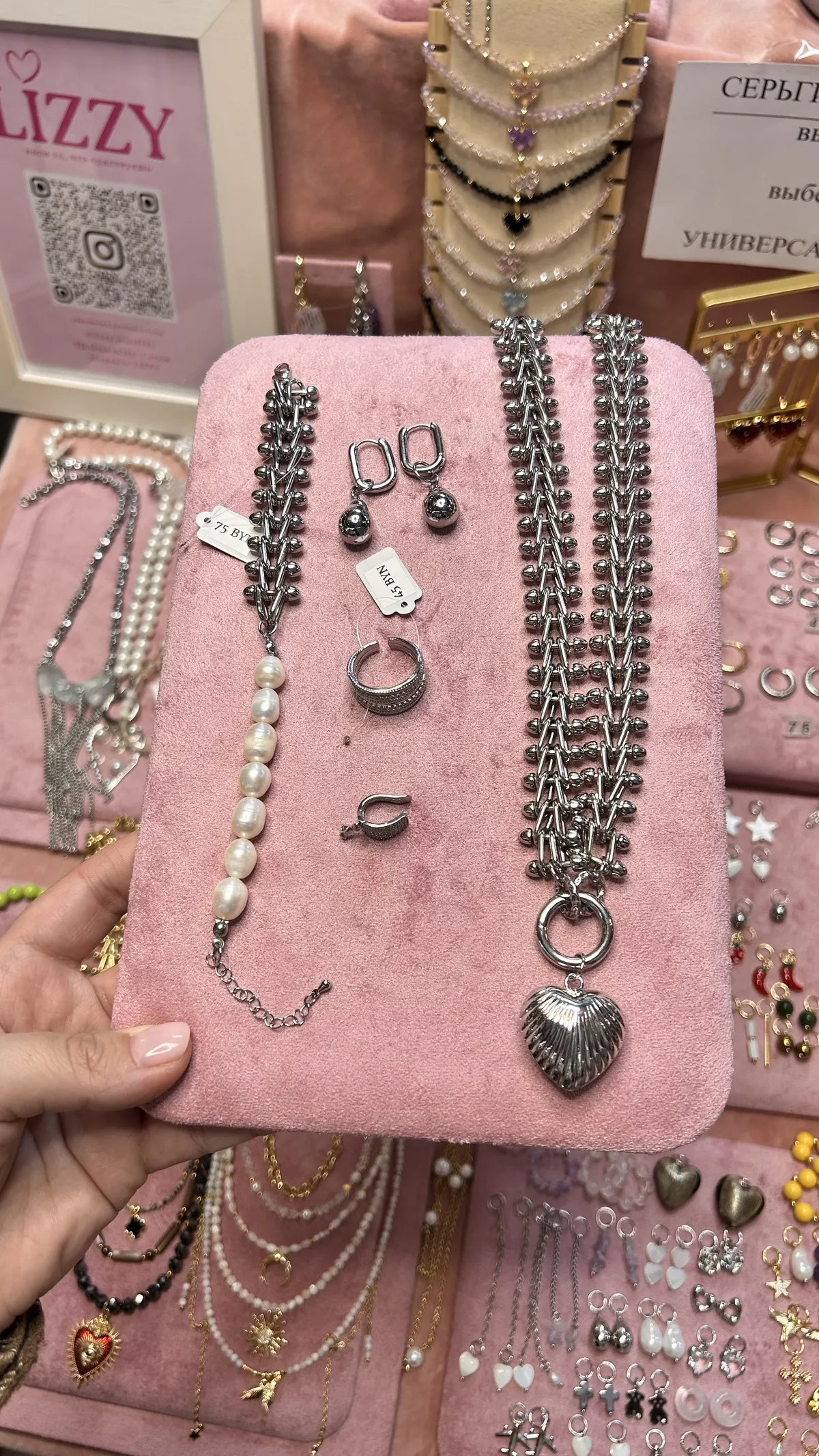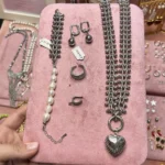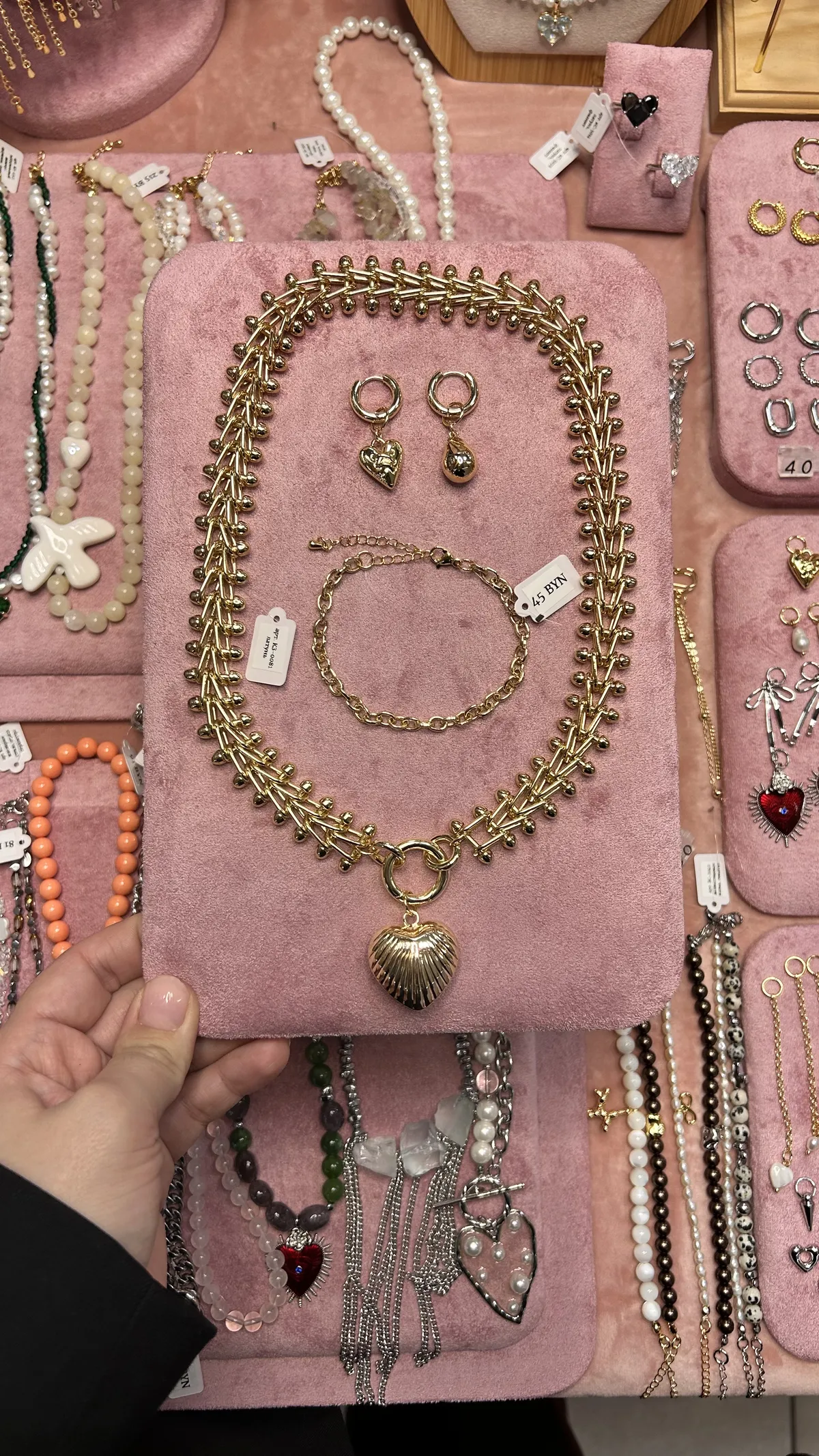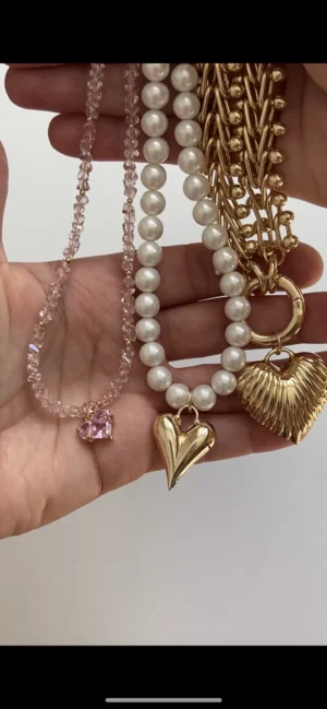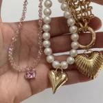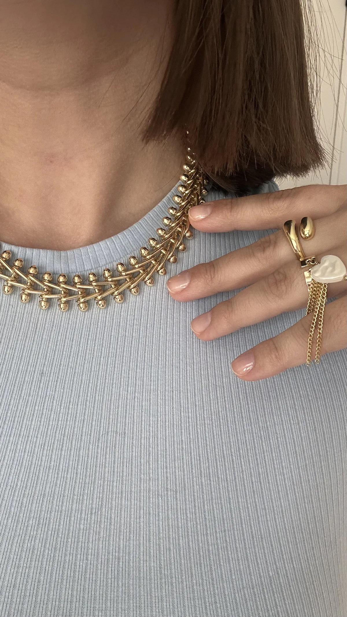 Колье из крупной цепи и ребристое сердце