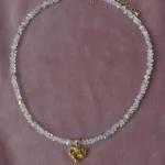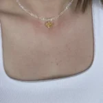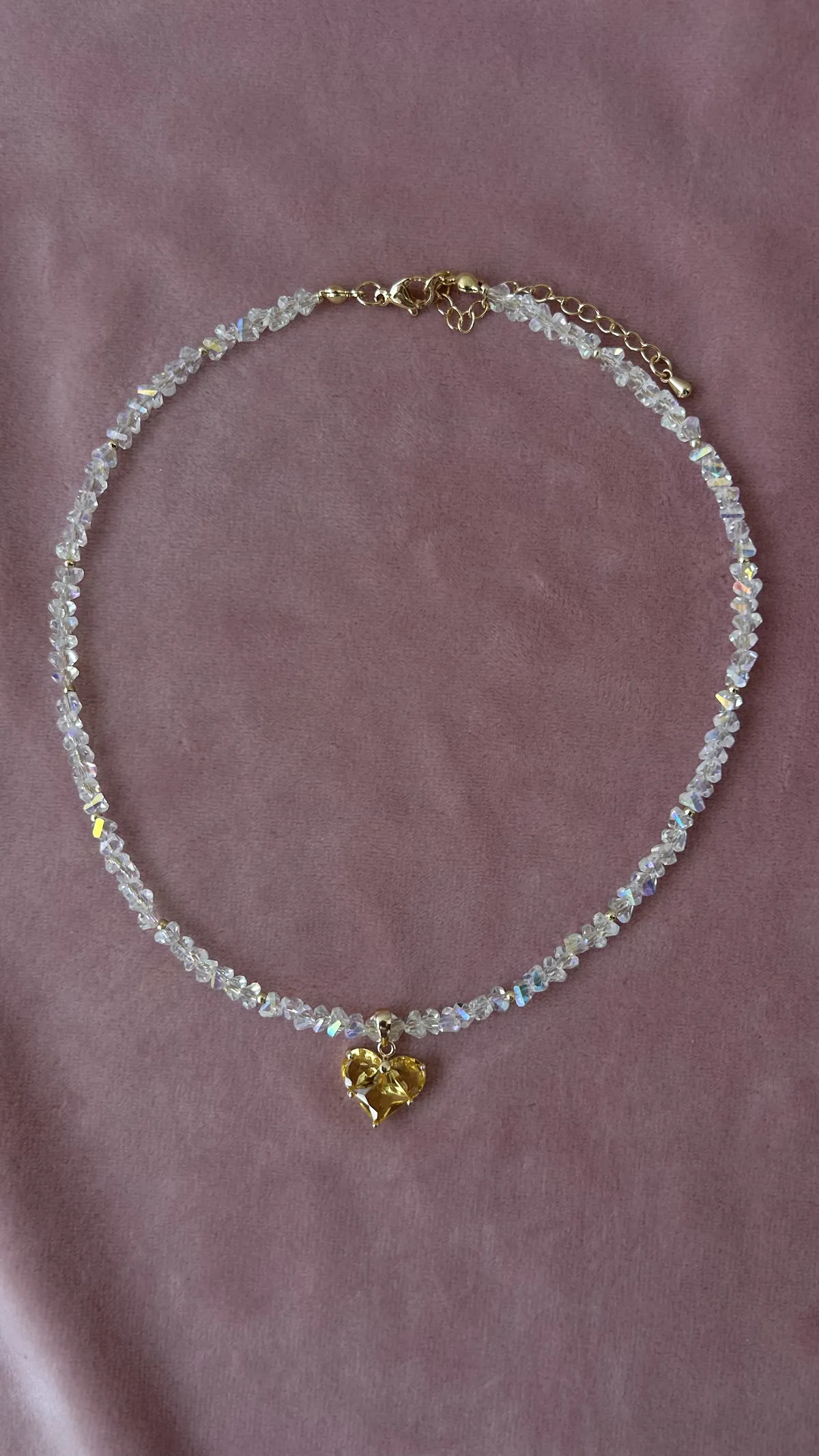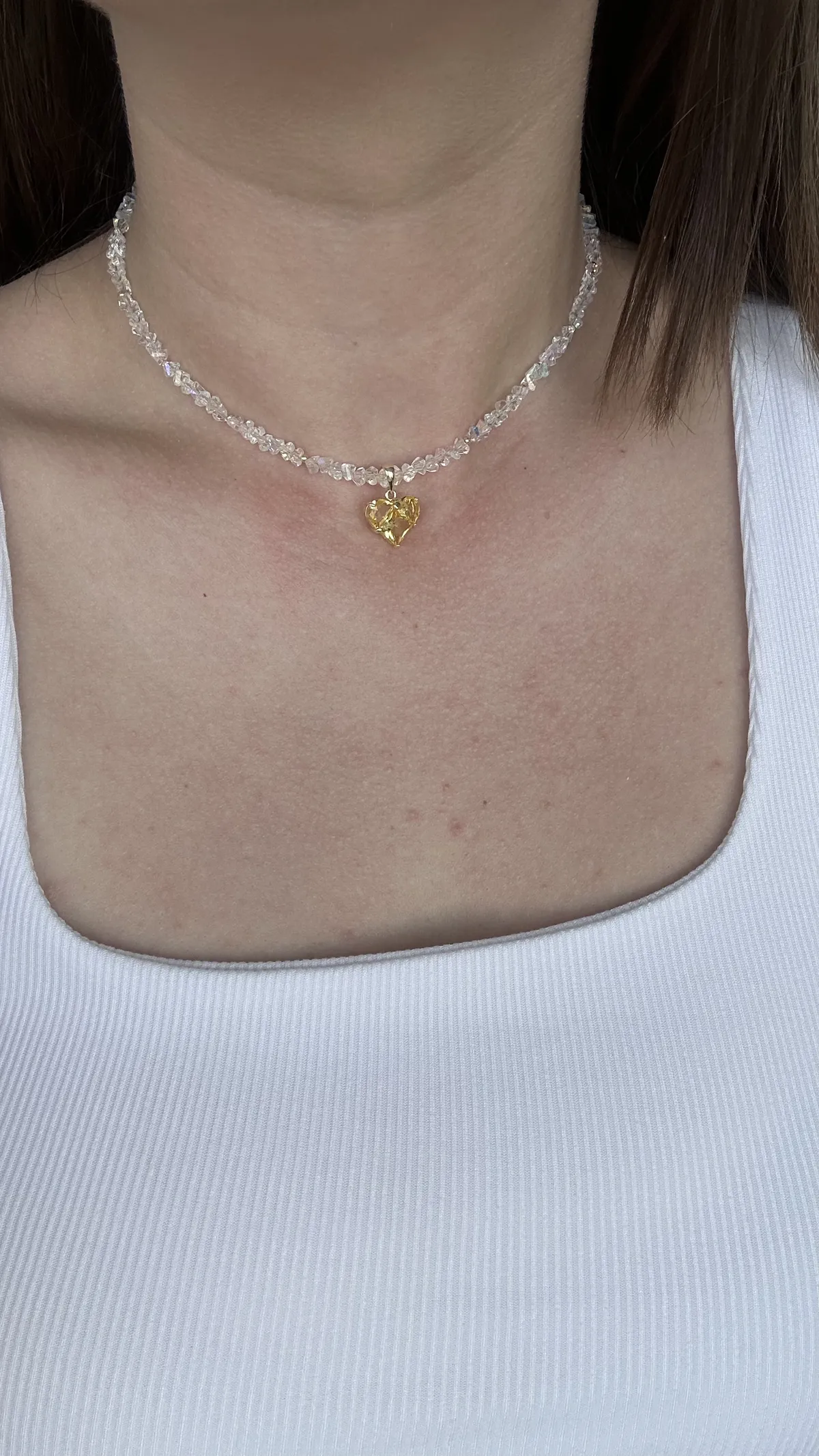 Колье из прозрачного ювелирного стекла с лимонным сердцем