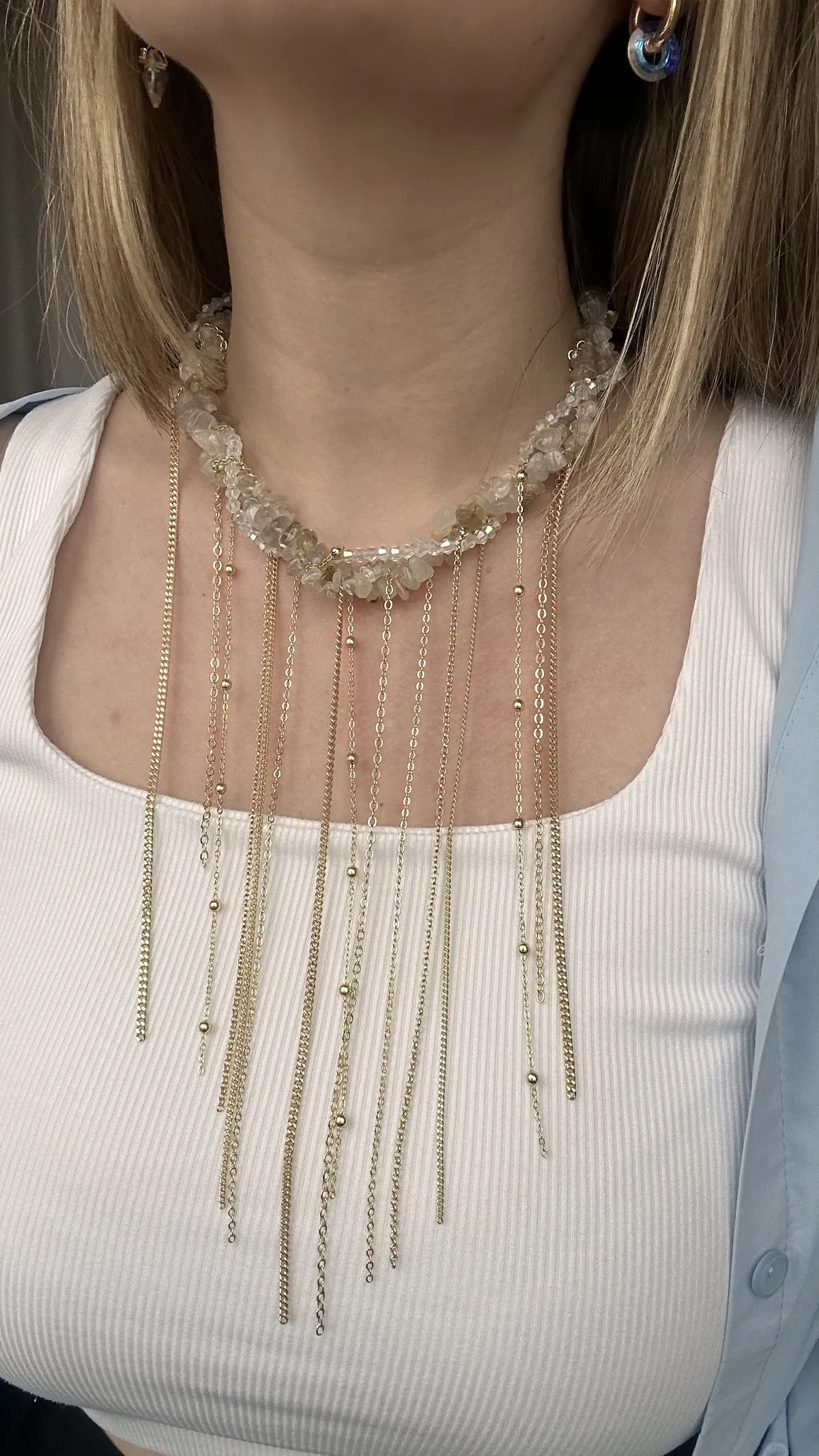 Колье из рутилового кварца с цепями
