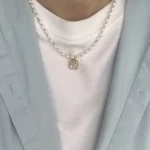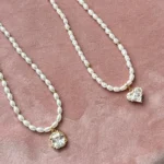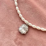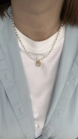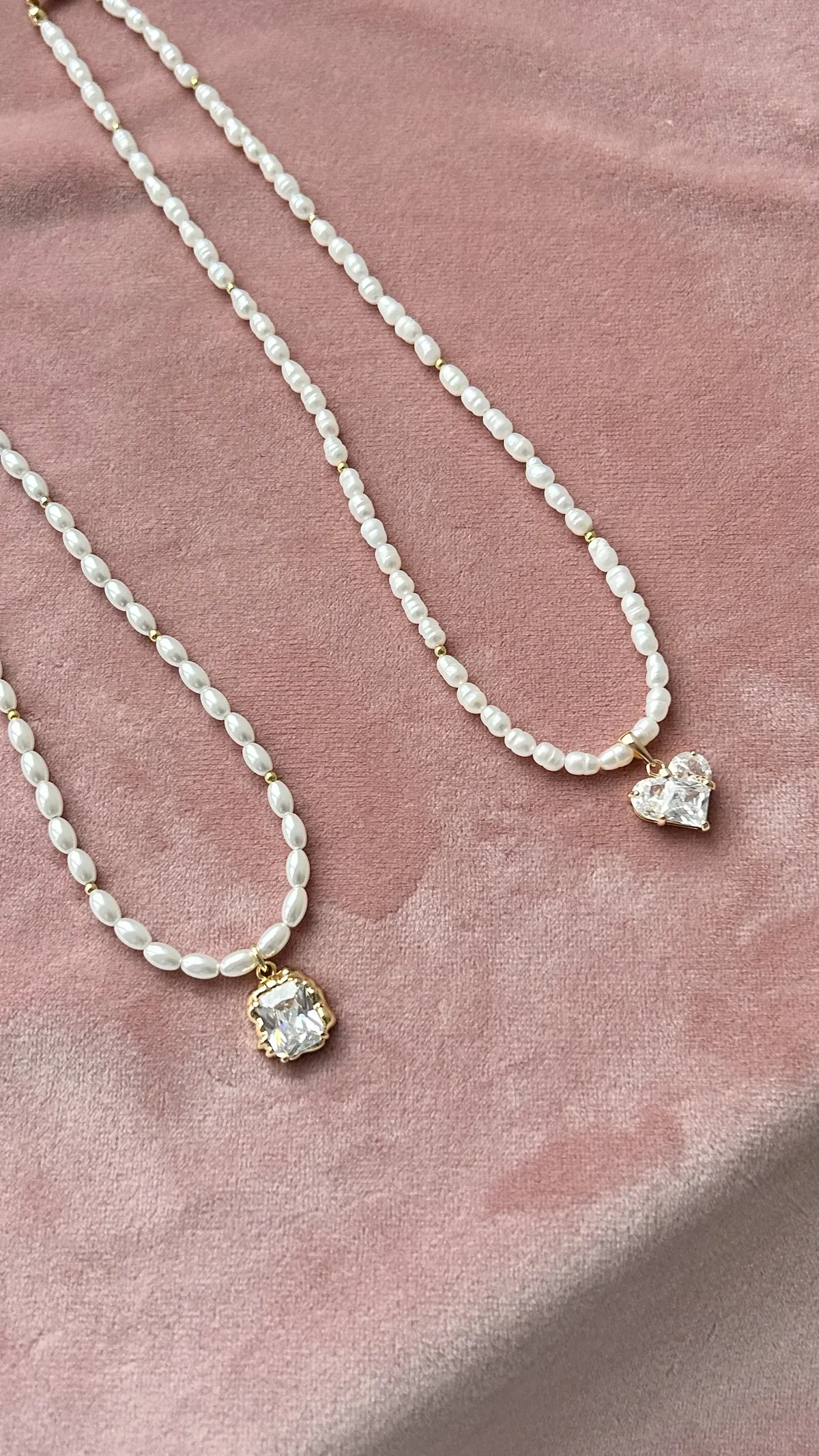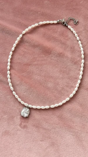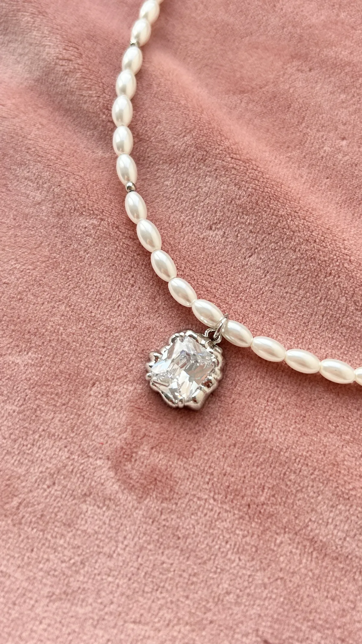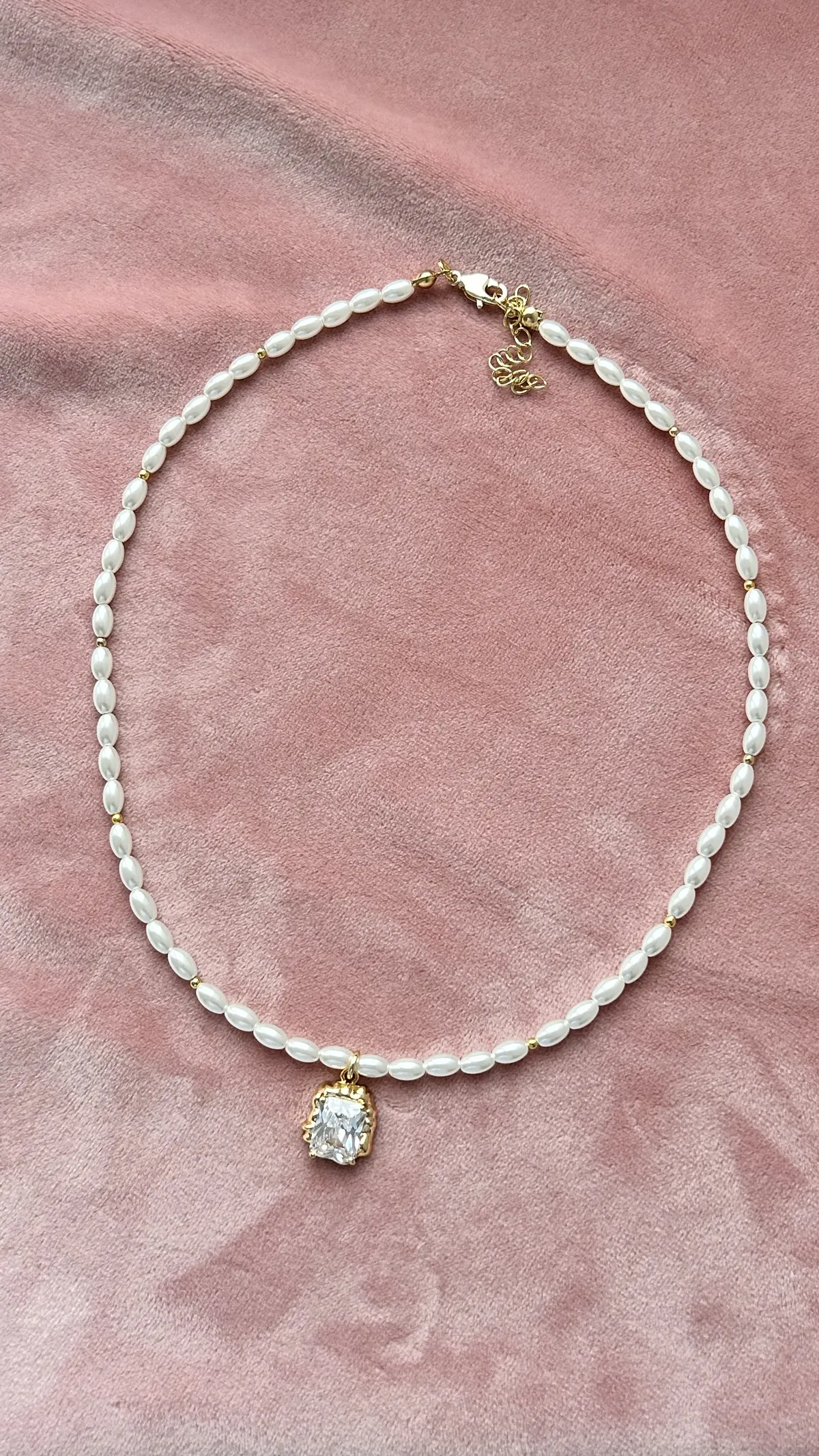 Колье из жемчуга майорки рис с подвеской прямоугольной