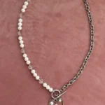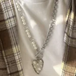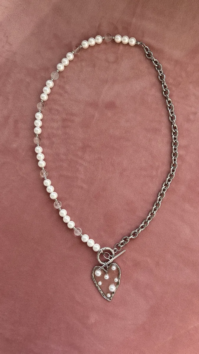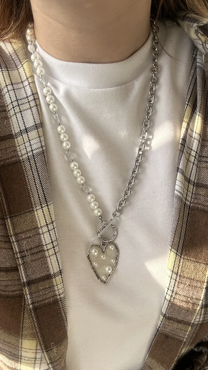Колье из жемчуга Майорки с цепью и сердцем с бусинками