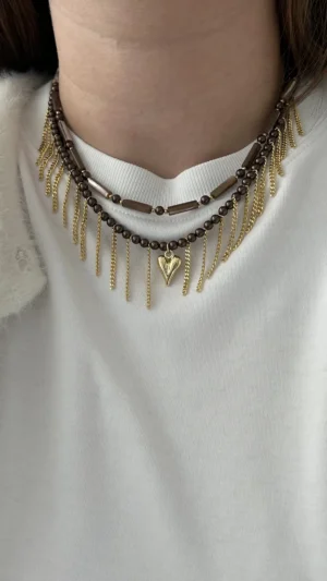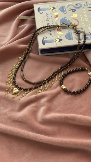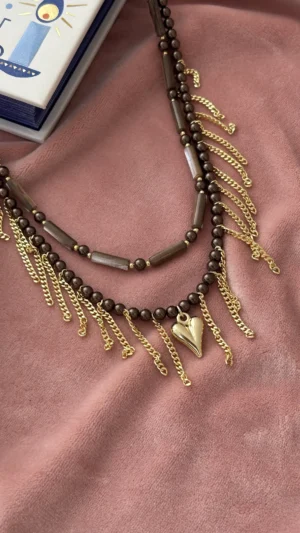 Колье вдохновлено тёплым уютом кофейного утра и бархатистостью шоколада — оно наполнит ваш образ мягкостью и сдержанной роскошью.