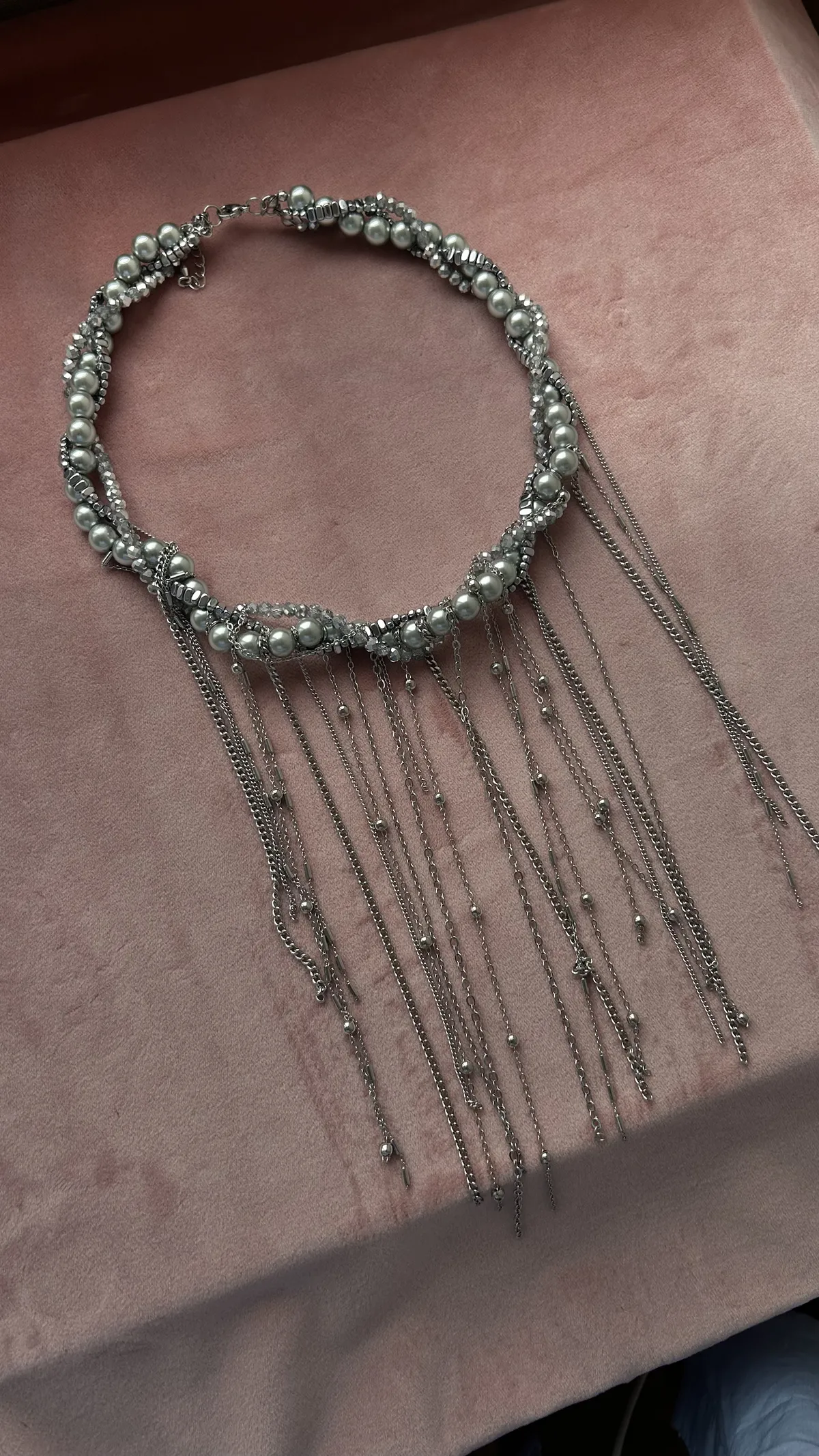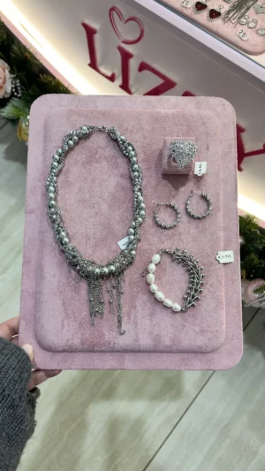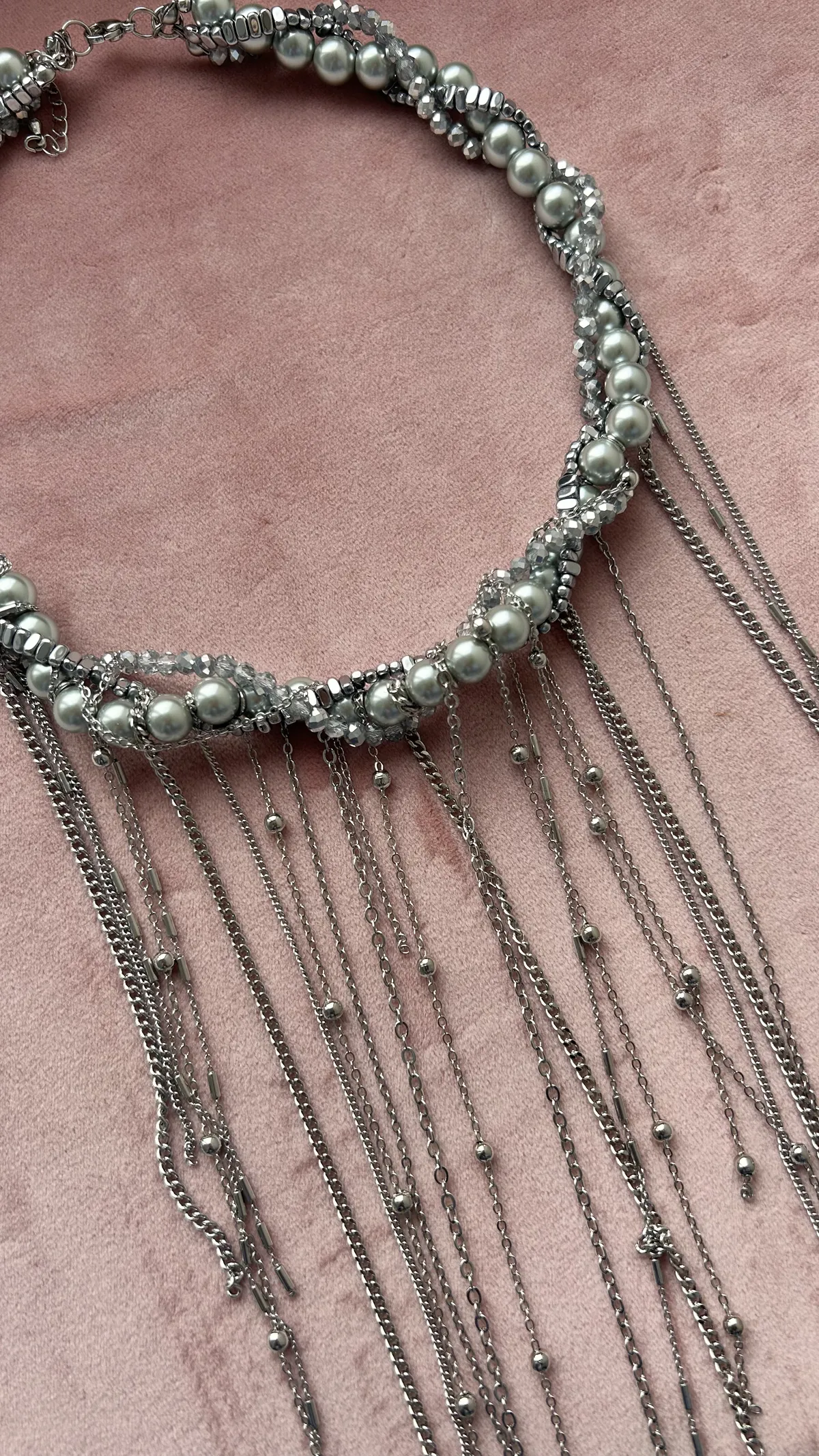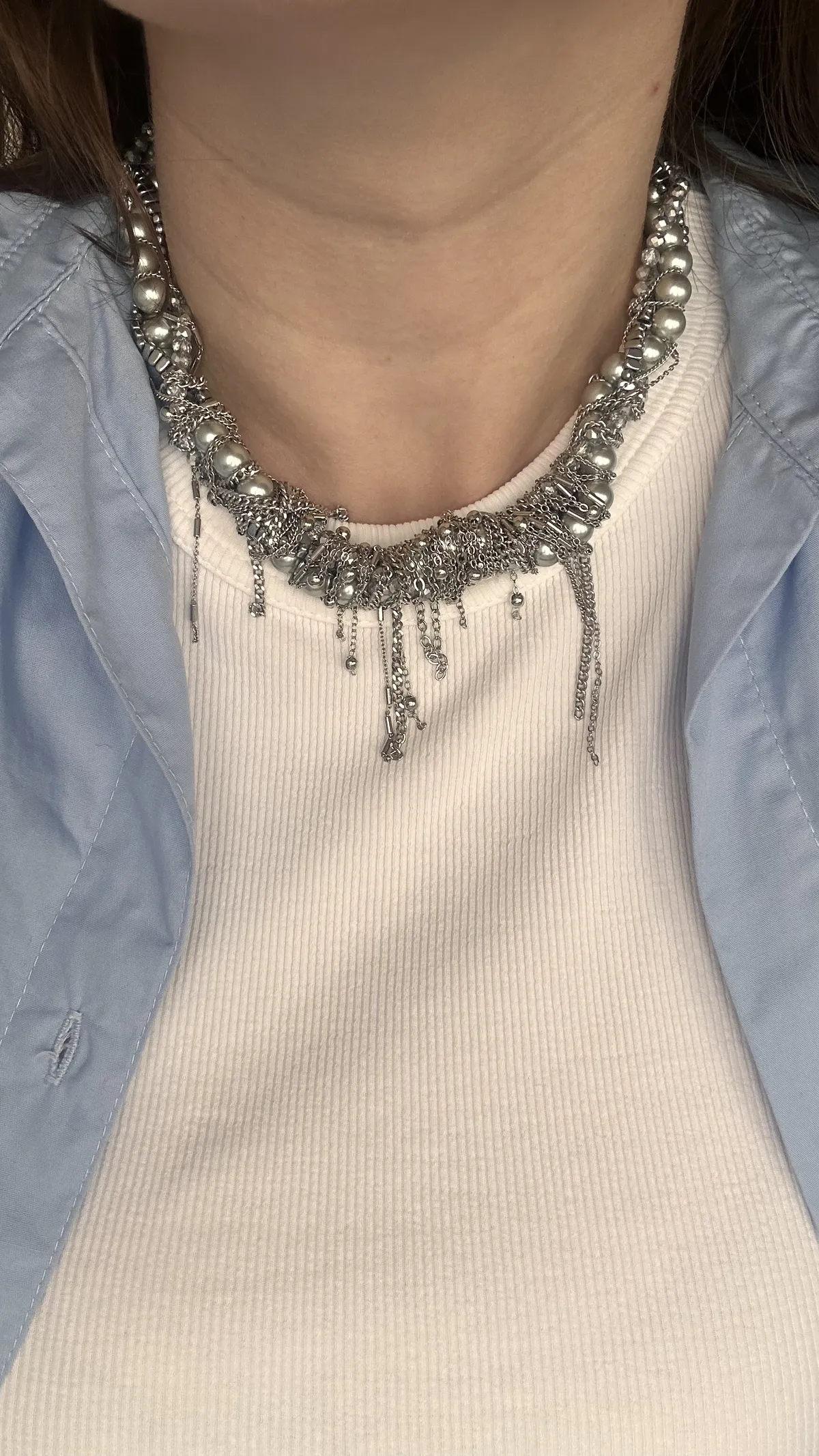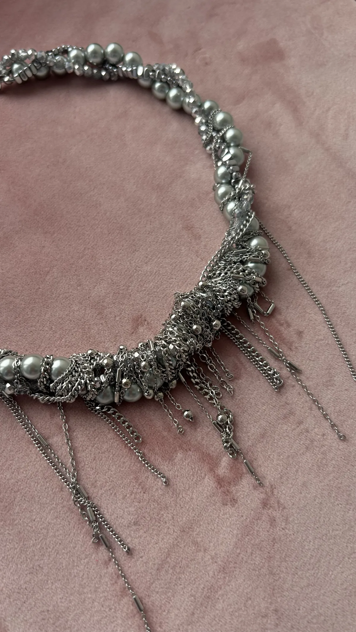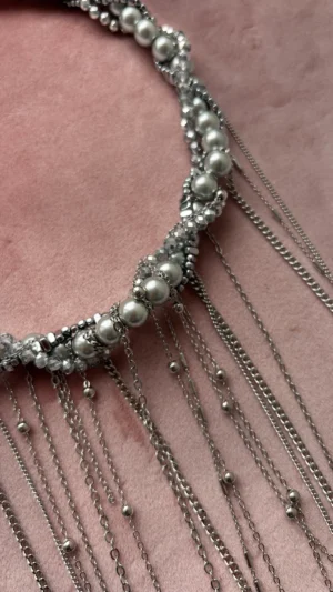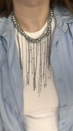 Стильное и эффектное колье, в котором гармонично сочетаются жемчуг Майорка, гематит и сияющий хрусталь. Особое внимание привлекают изящные цепи, которые можно заматывать по-разному, создавая уникальные образы под любое настроение и повод.