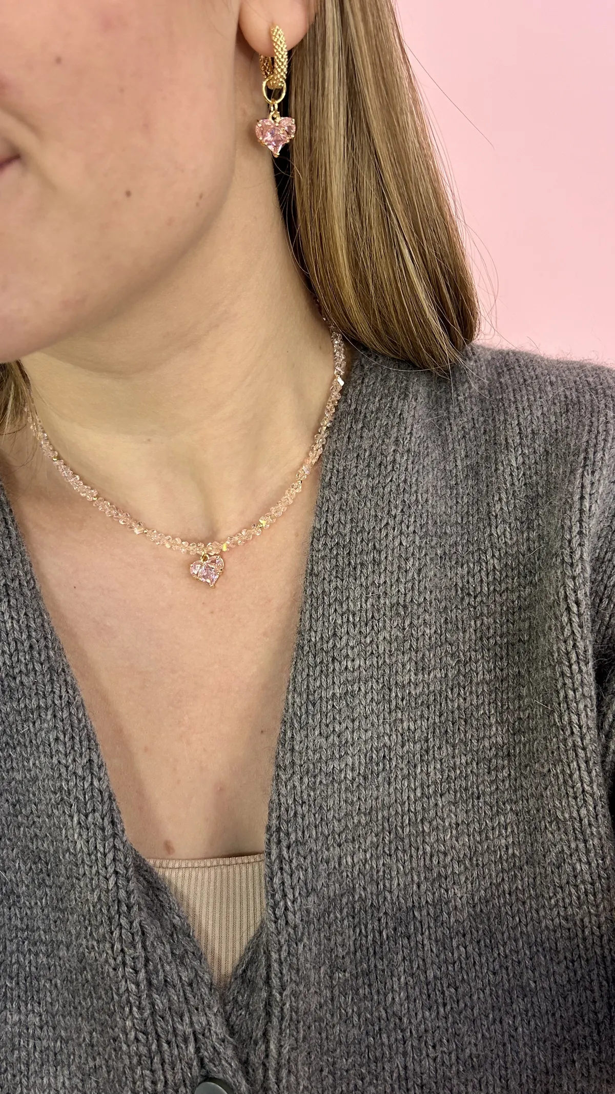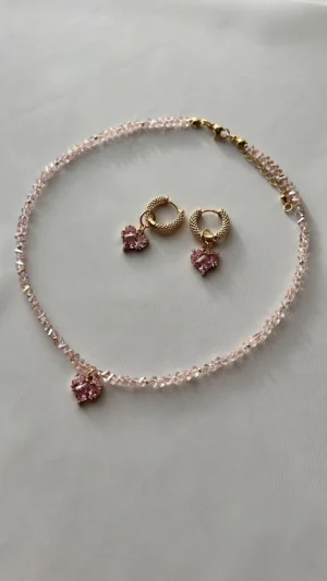 Колье розовое сердце