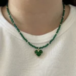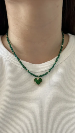 Яркое колье из зелёных гранёных бусин с подвеской в форме сердца. Эффектный аксессуар для стильного образа