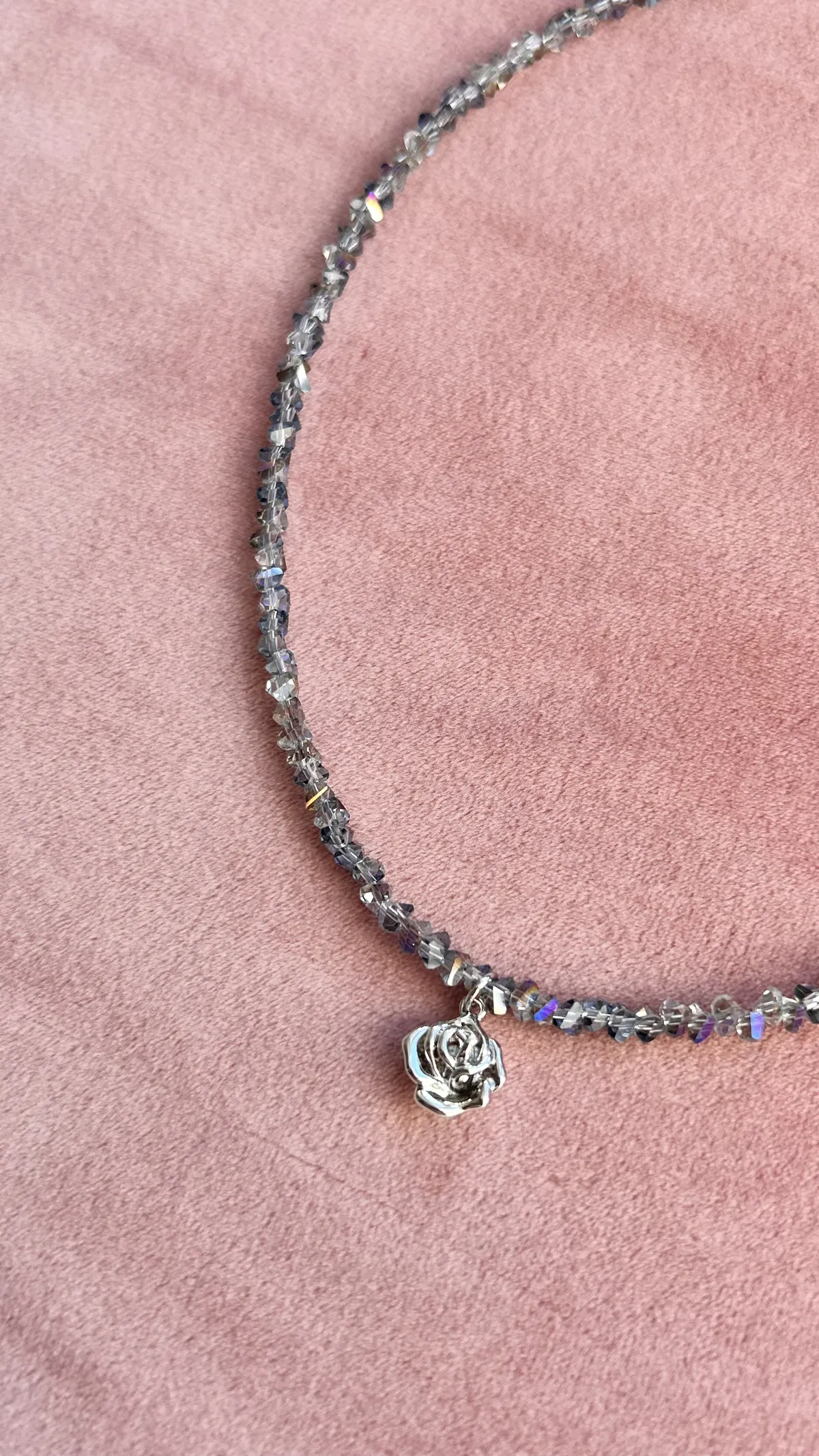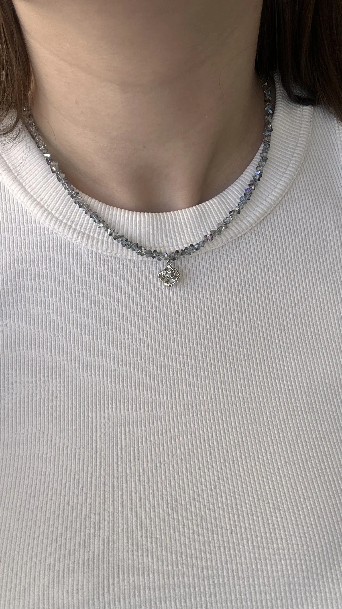 Изысканный чокер из переливающихся бусин ювелирного стекла с акцентной подвеской в виде розы. Украшение красиво играет на свету, добавляя нежное сияние каждому образу. Такой чокер отлично дополнит как повседневный, так и вечерний стиль, подчёркивая вашу утончённость и любовь к деталям.