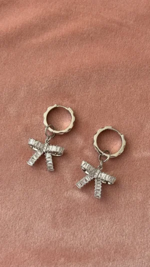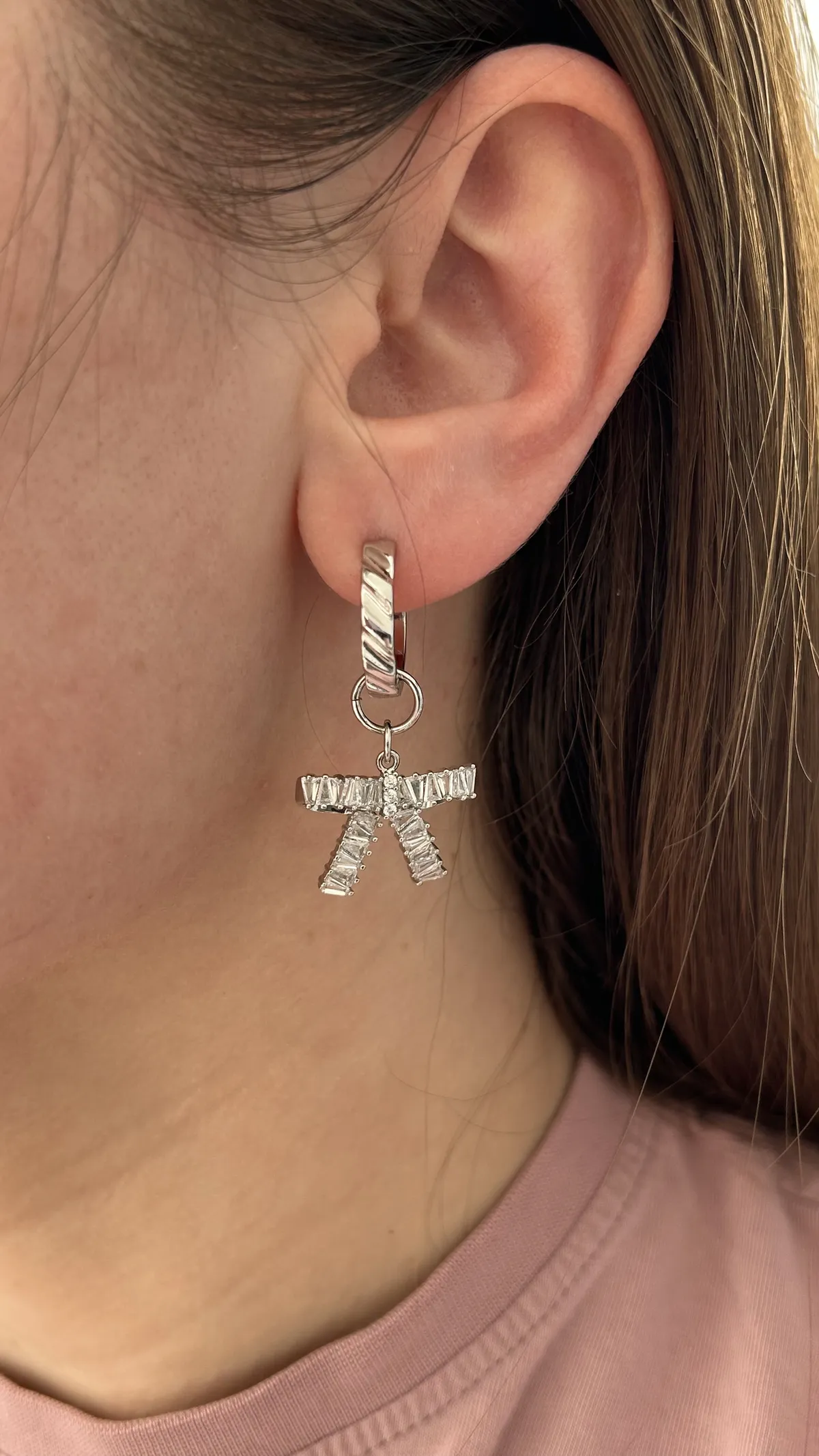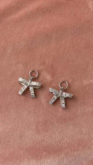 Оригинальная серебристая подвеска в виде банта, украшенная инкрустацией из прозрачных камней. Такой аксессуар добавит игривости и праздничного блеска, гармонично дополнит как повседневный, так и вечерний наряд.
