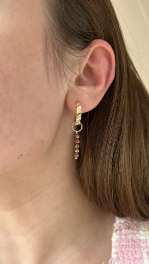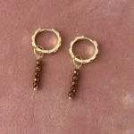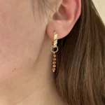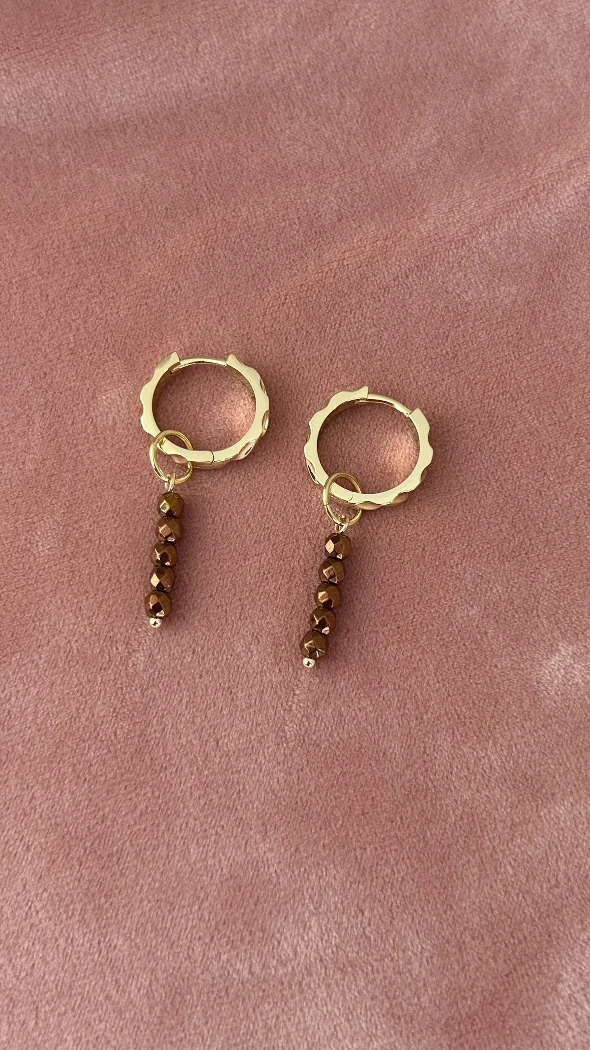 Стильная подвеска из гематита, выполненная из нескольких аккуратных гранёных бусин с металлическим блеском. Гематит отличается глубоким, насыщенным оттенком и зеркальной поверхностью, благодаря чему серьга смотрится современно и изысканно.