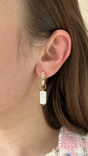 Элегантная подвеска выполнена из искусственного жемчуга Майорка в виде прямоугольной бусины с благородным перламутровым блеском. Майорка отличается гладкой поверхностью и мягким сиянием, благодаря чему серьги выглядят утонченно и современно.