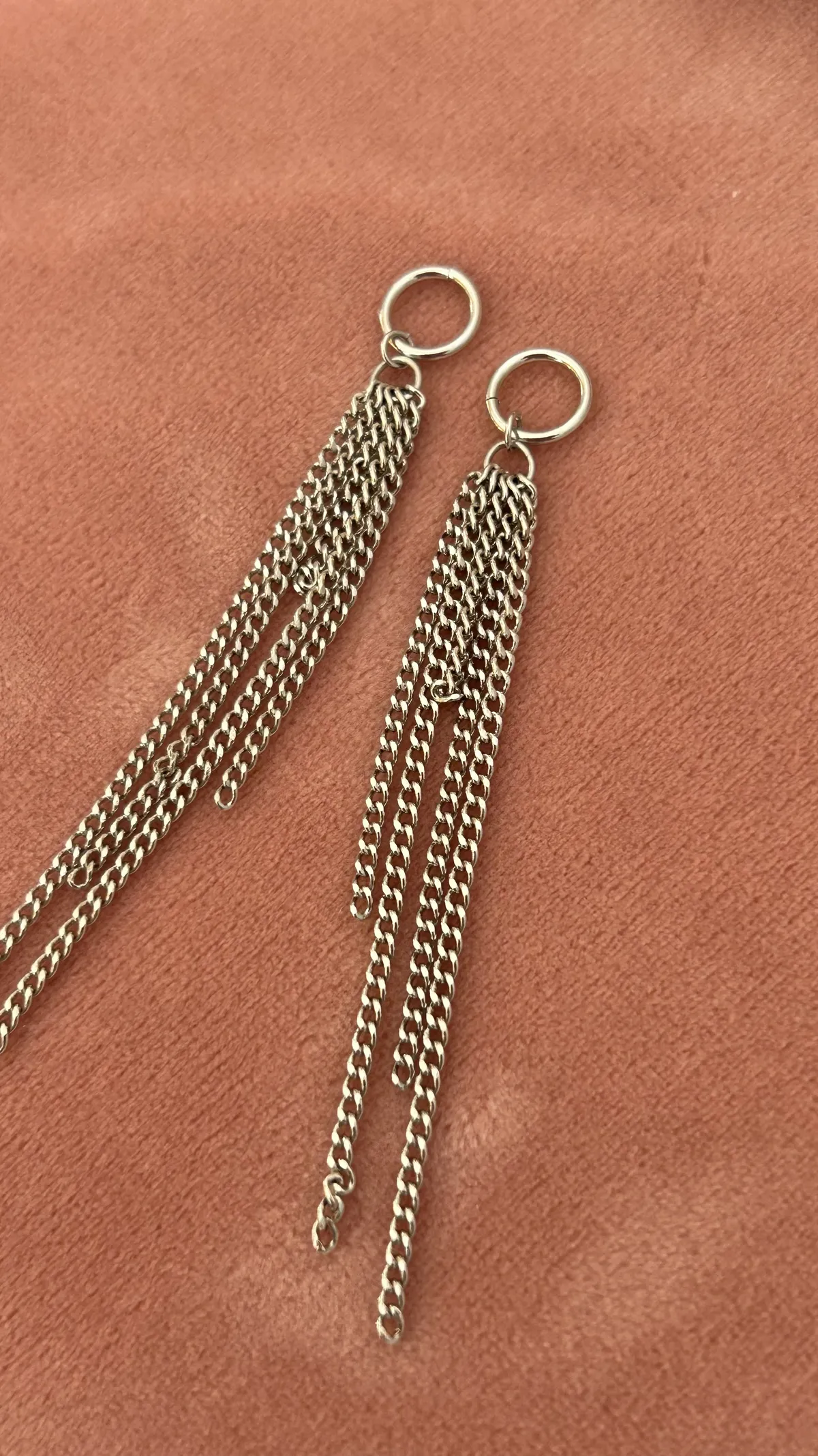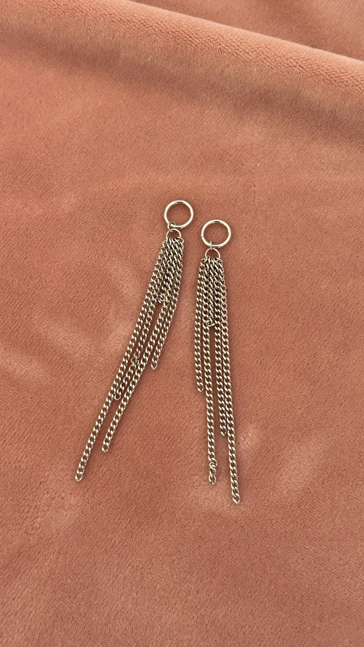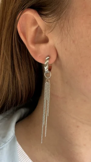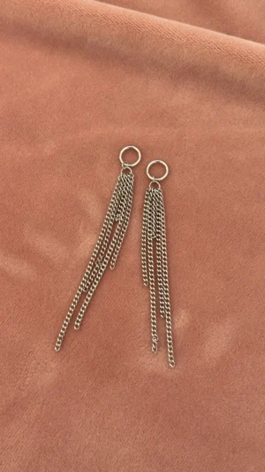 Подвеска с несколькими длинными цепочками. Придаёт серёжкам трендовый и дерзкий вид. Можно дополнять другими подвесками для создания более объемного эффекта.