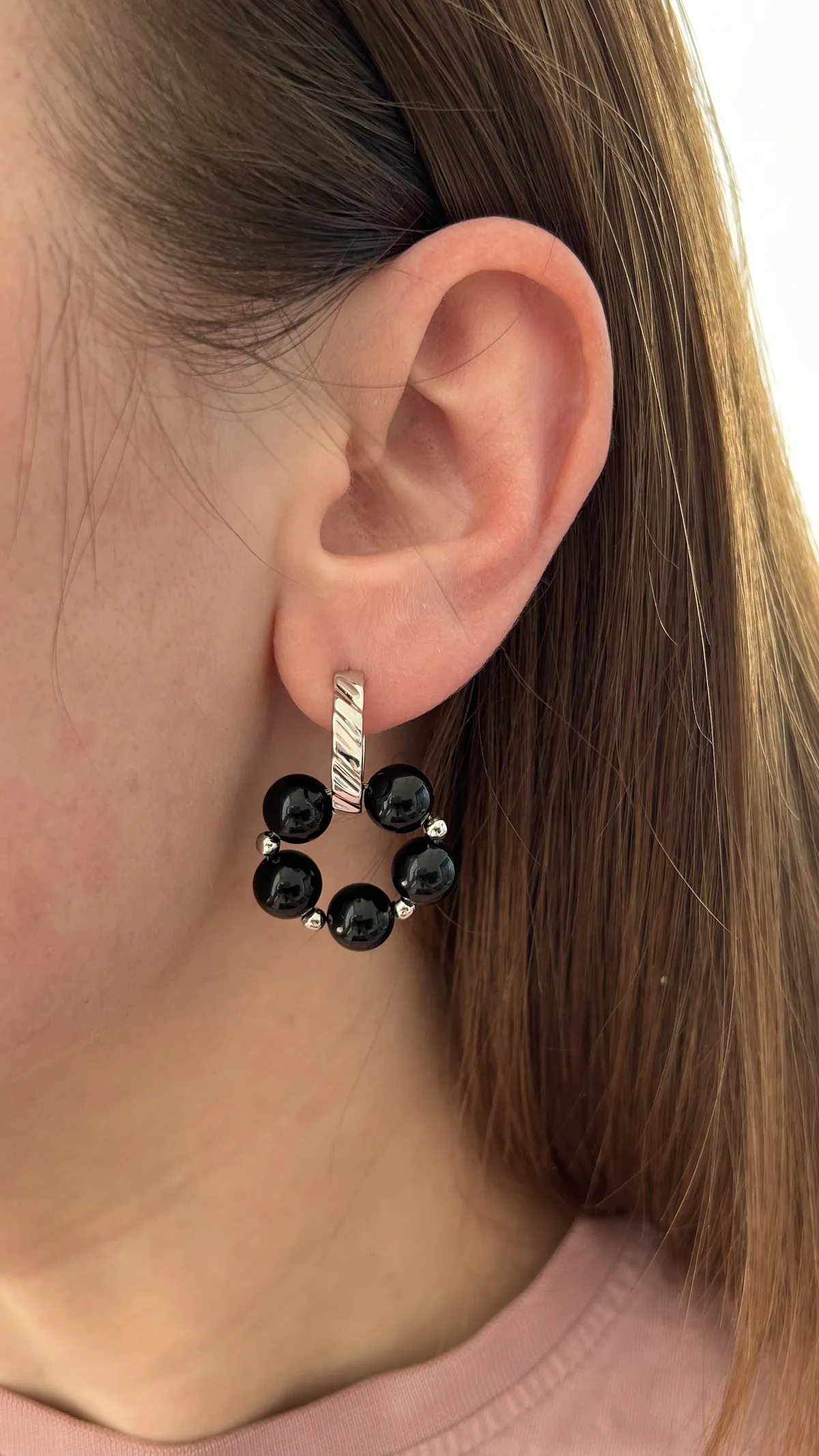 Эффектная подвеска-колечко для серёжек трансформеров, выполненная из крупных чёрных бусин агата с серебристыми акцентами. Такая подвеска легко добавит акцент любой паре серёг, подчеркнёт стиль и индивидуальность образа, идеально сочетаясь как с повседневной одеждой, так и с нарядными образами.