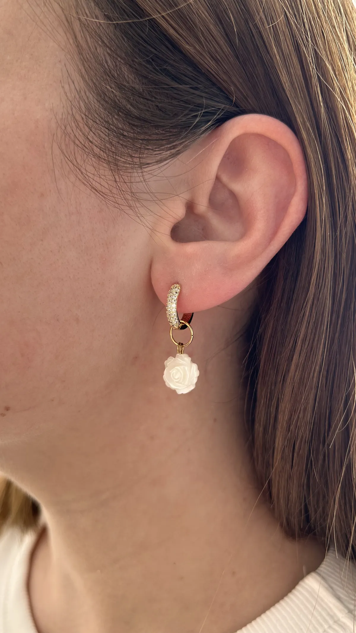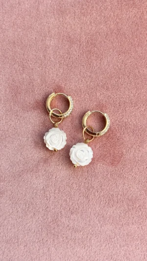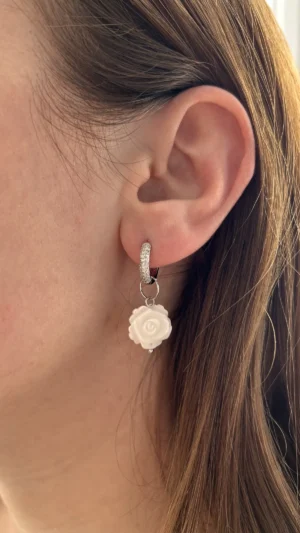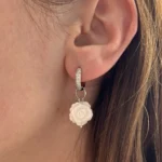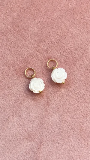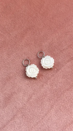Изящная подвеска в форме миниатюрной розы, вырезанной из натурального перламутра. Лепестки аккуратно проработаны, и каждый изгиб сияет нежным жемчужным блеском, отражая свет мягкими переливами. Эта подвеска смотрится очень женственно и романтично, напоминая о хрупкости и красоте природы.