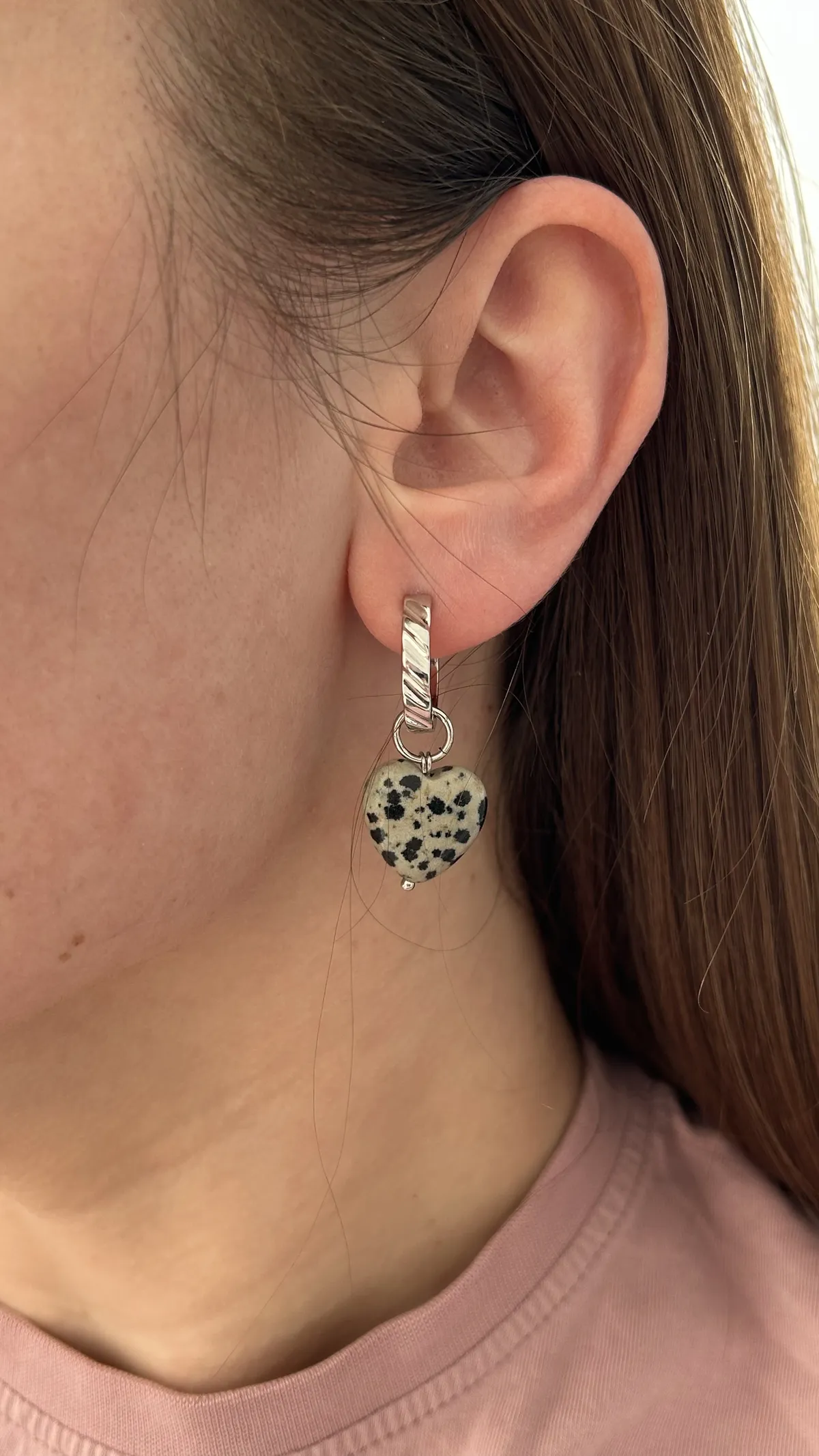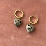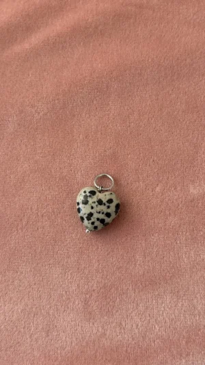 Изящная подвеска в форме сердечка, выполненная из натуральной далматиновой яшмы. Камень с характерными черными вкраплениями на светлом фоне символизирует гармонию и неповторимость. Отлично подойдет для романтических и повседневных образов, подчеркнёт нежность и индивидуальность.