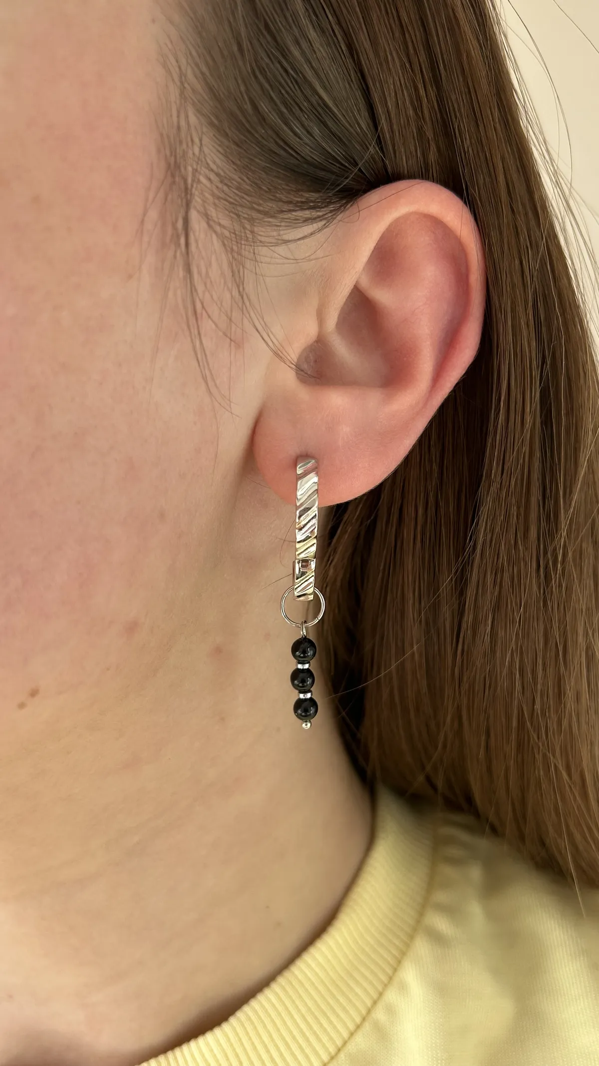 Лаконичная вертикальная подвеска из трёх круглых бусин агата. Их глубокий блеск придаёт украшению особую энергетику. Такой аксессуар станет универсальным дополнением к вашему гардеробу — он легко сочетается как с деловыми, так и с кэжуал-образами.