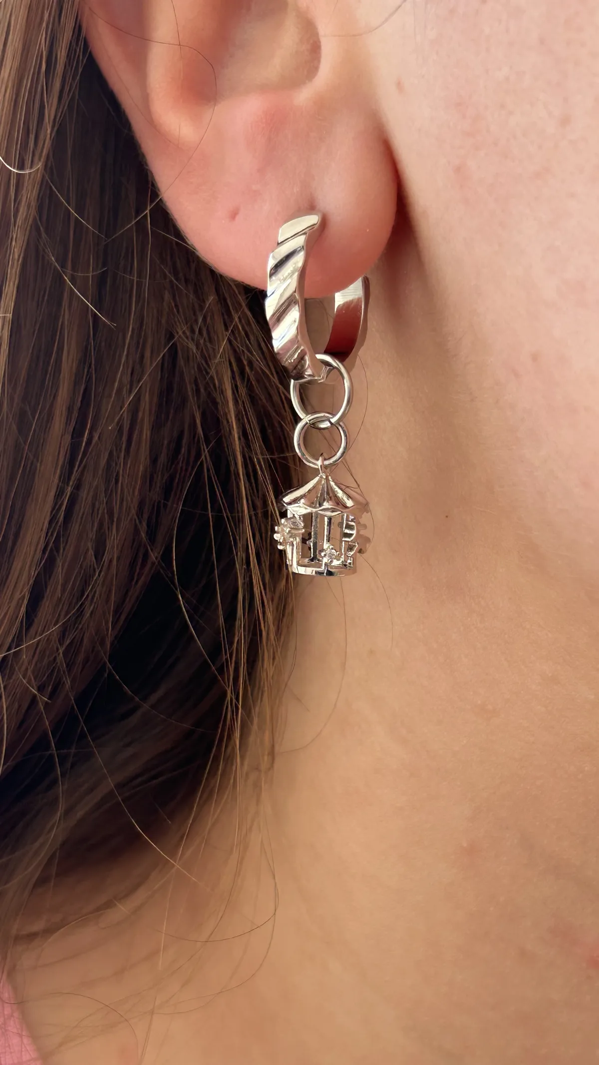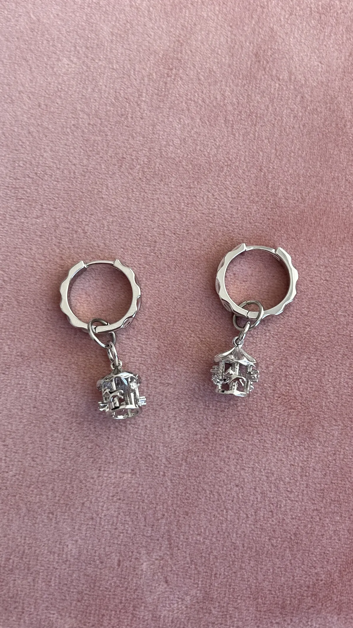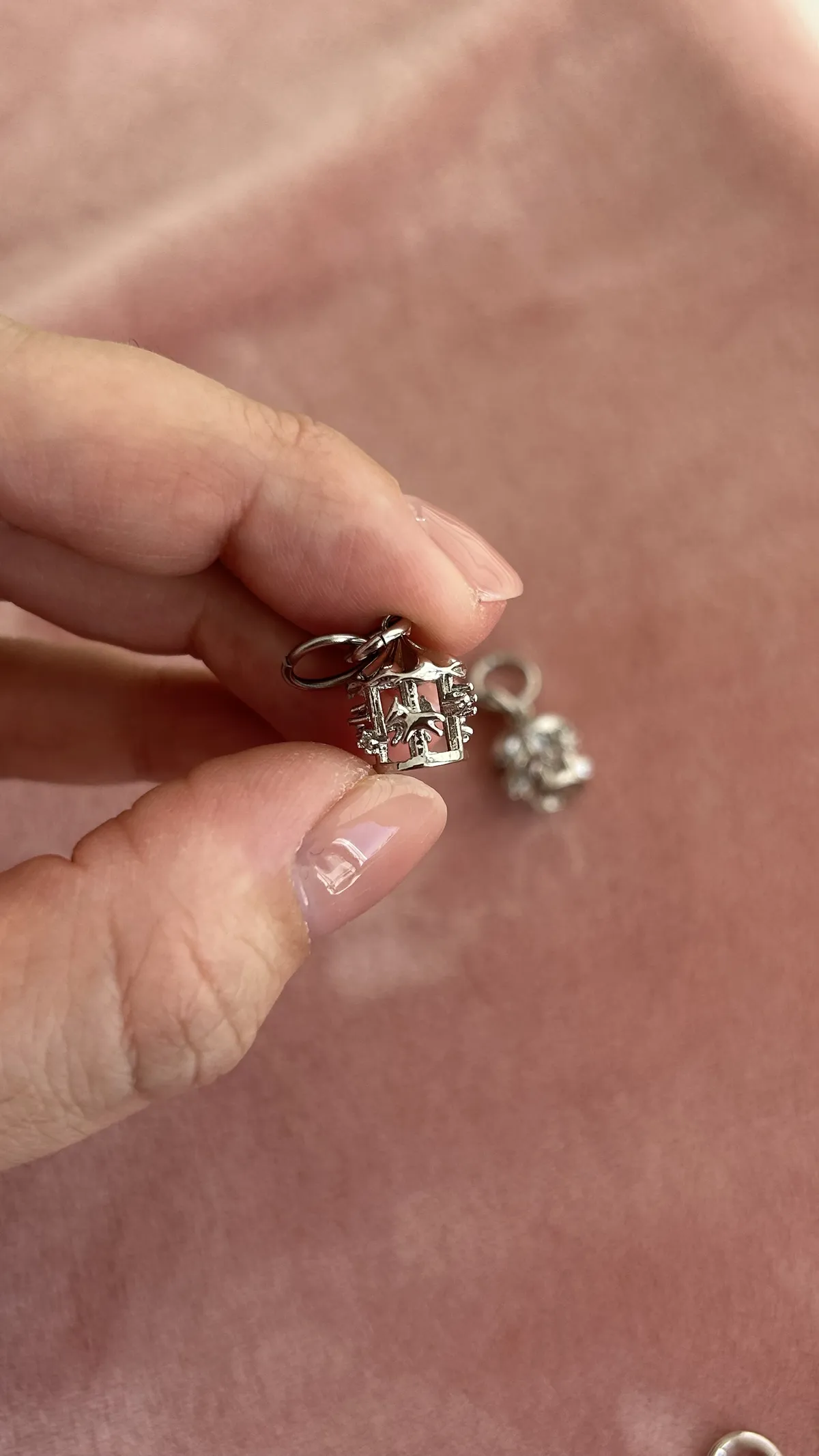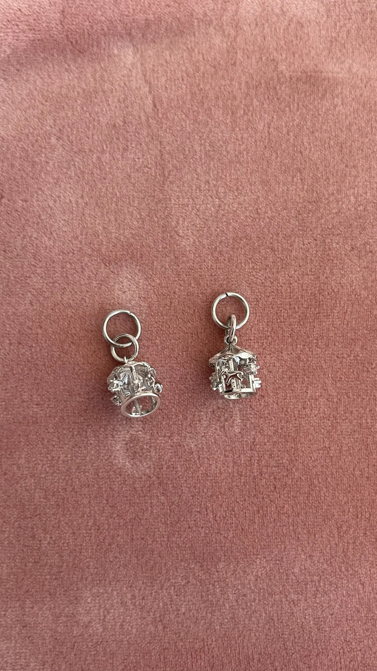 Миниатюрная серебристая подвеска в виде карусели с лошадками — романтичный и оригинальный акцент, навевающий ностальгию о детстве и празднике. Удивительная детализация делает украшение запоминающимся и необычным элементом вашего стиля.
