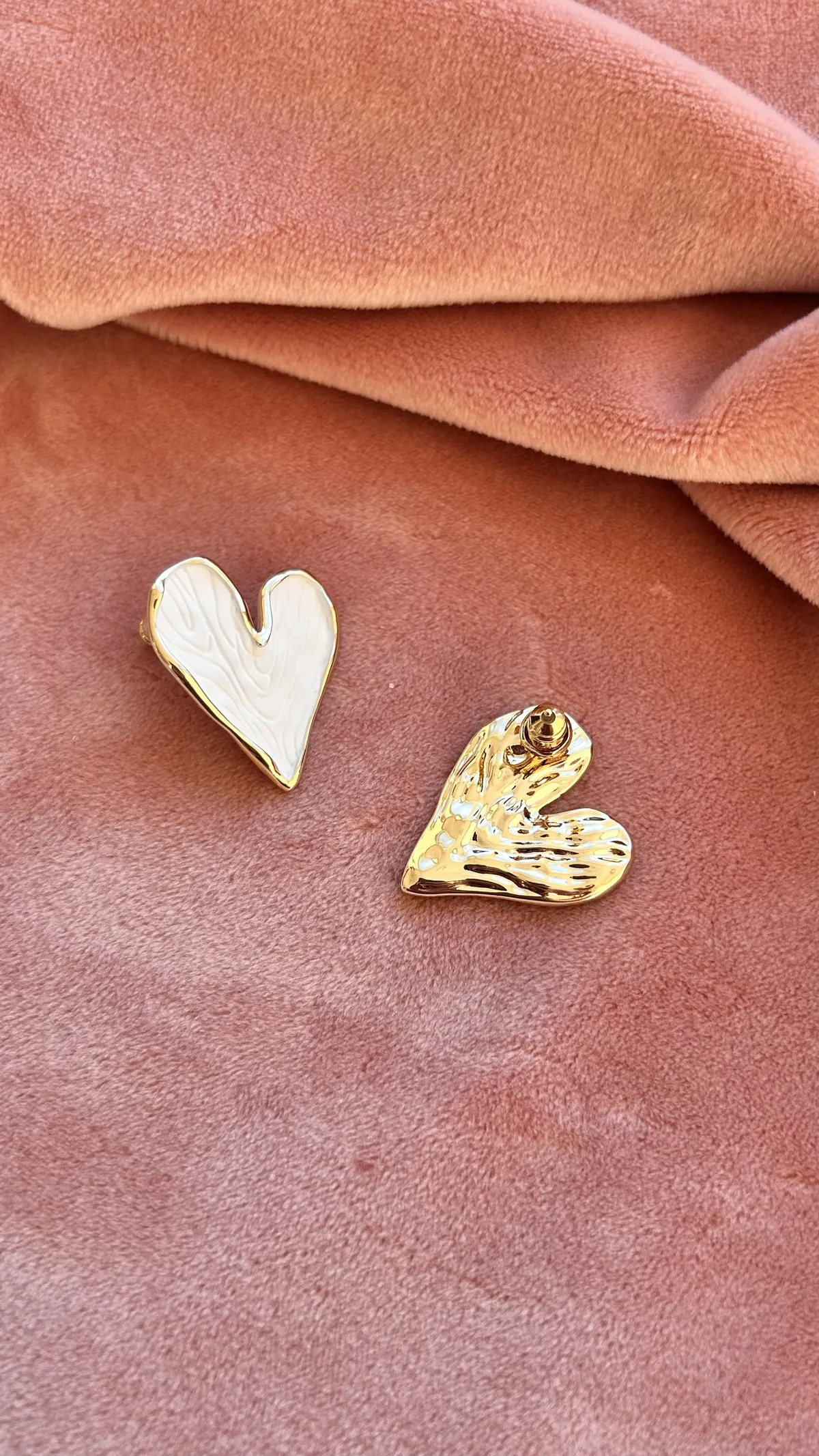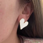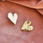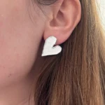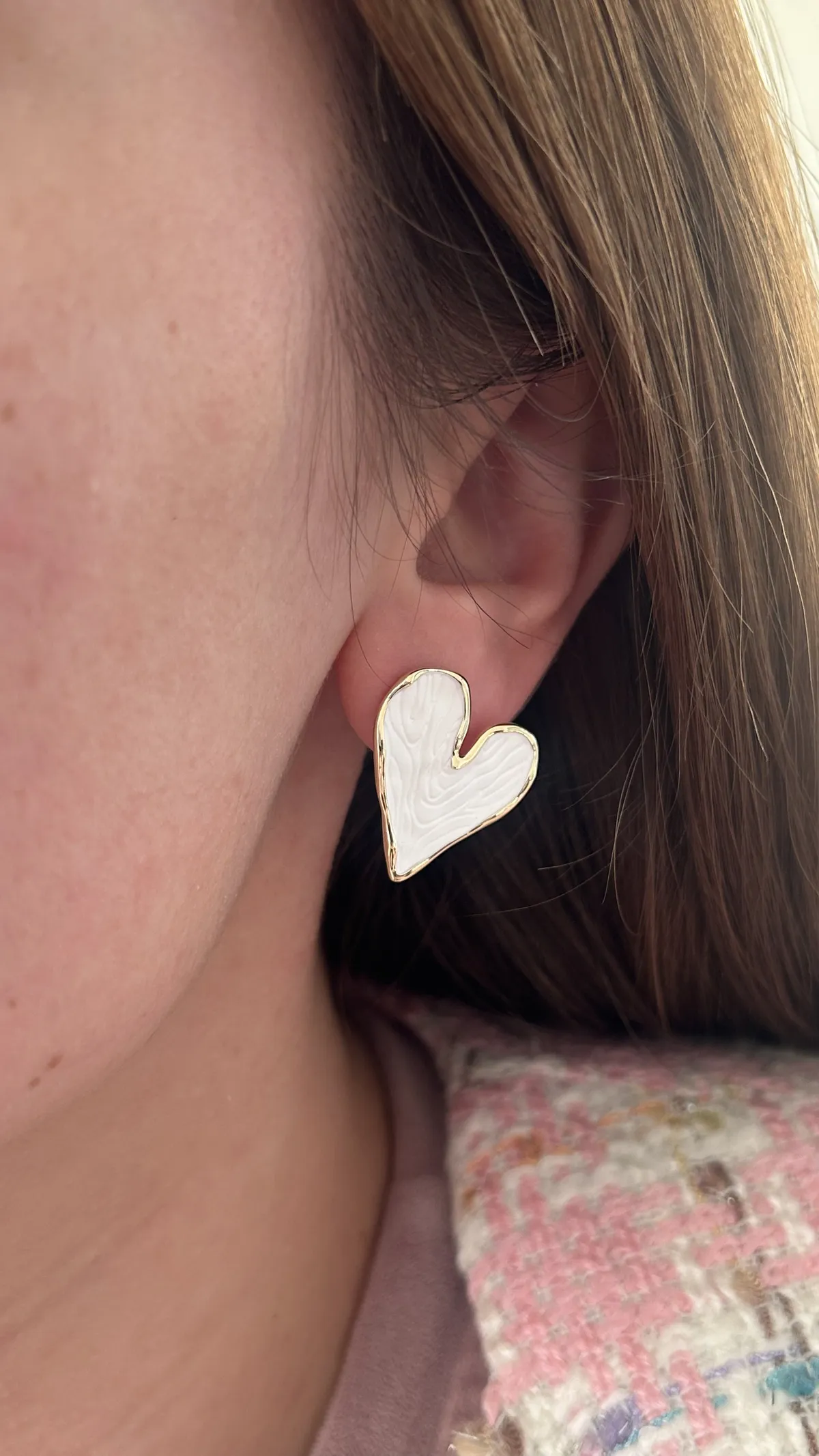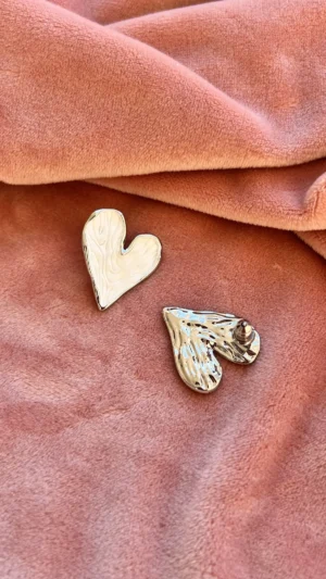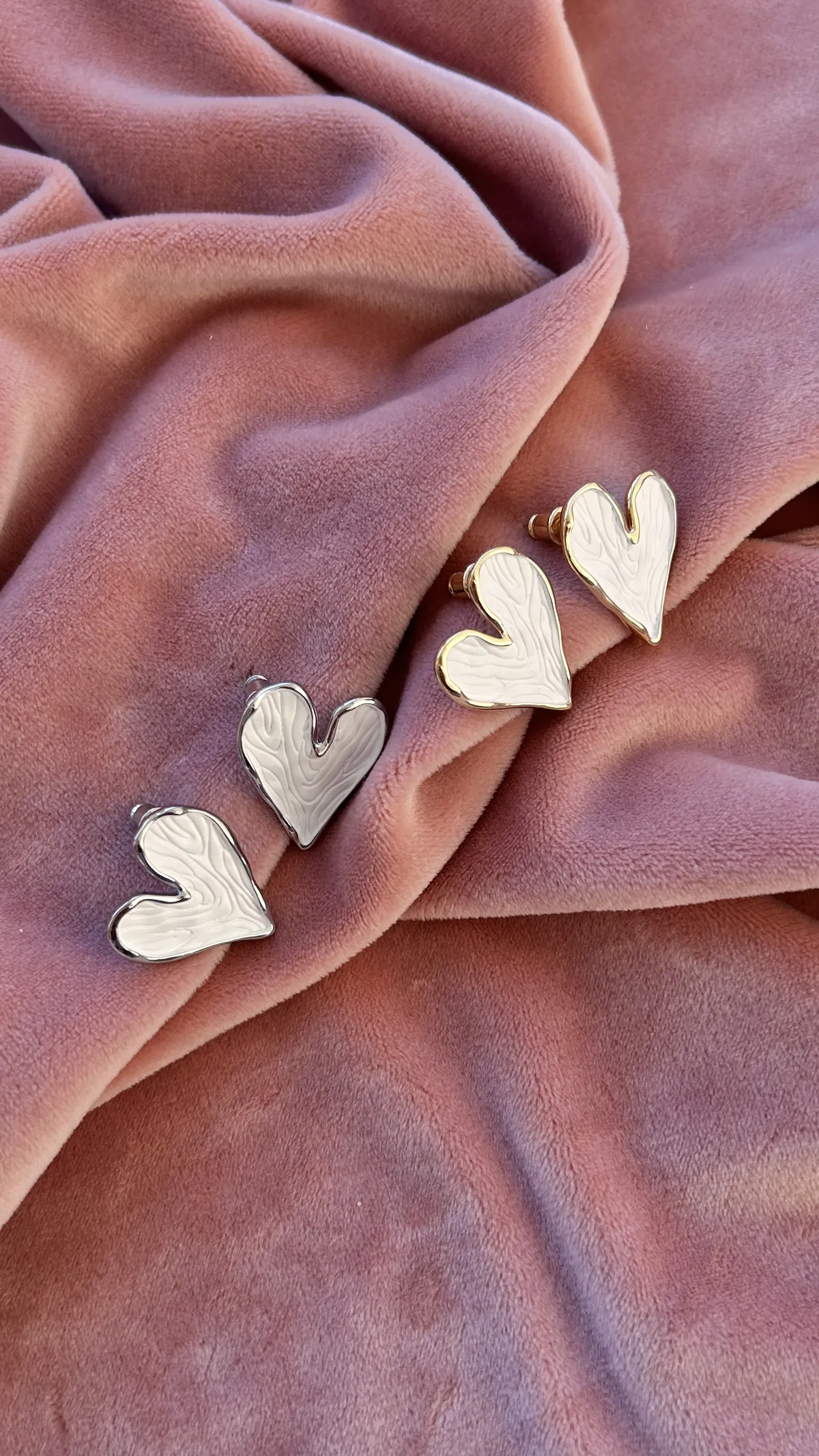Объемная серьга в виде асимметричного белого сердца с рельефным узором, обрамлённая тонкой каймой. Такой неожиданный и современный взгляд на классическую форму делает украшение ярким акцентом для любого образа.