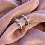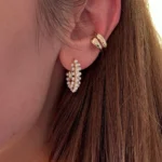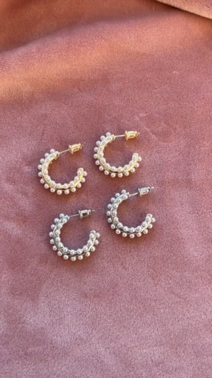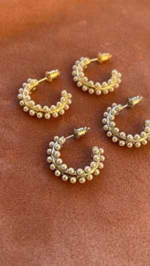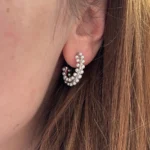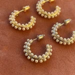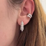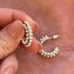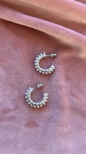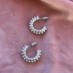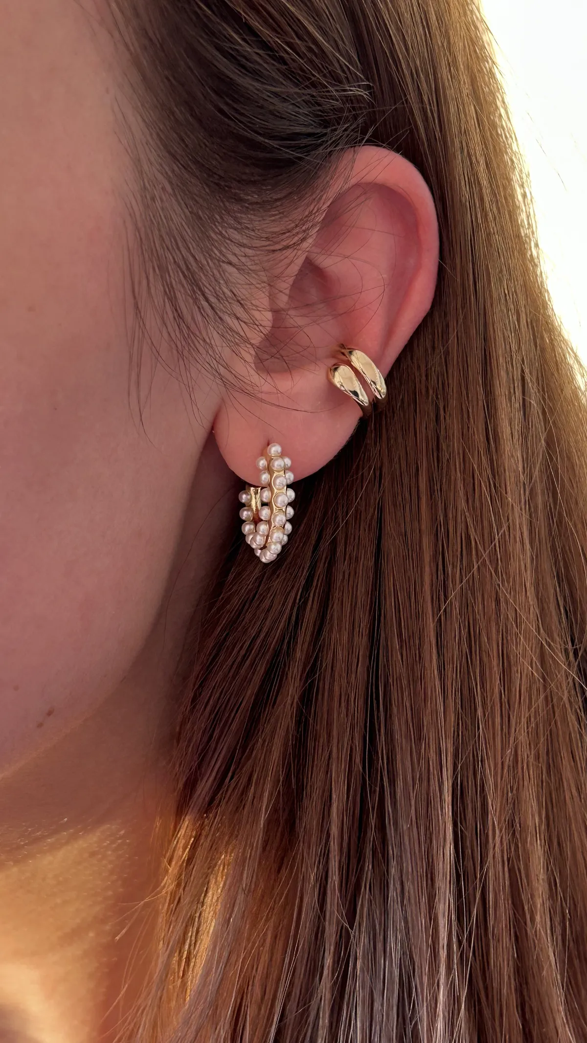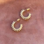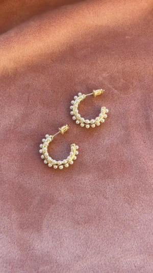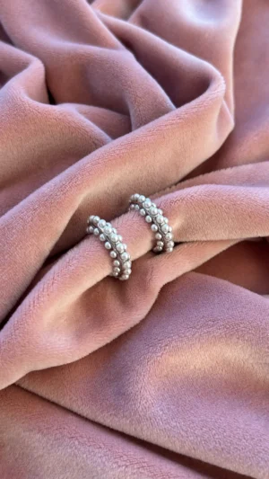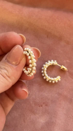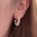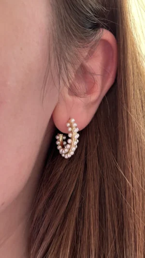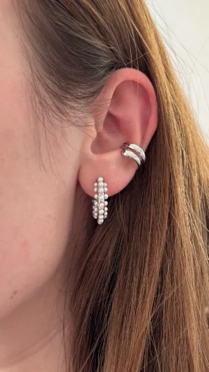 Объемная серьга-кольцо, украшенная множеством миниатюрных жемчужин. Дизайн имитирует мягкое движение морской волны, а жемчуг добавляет романтичности и легкости.
