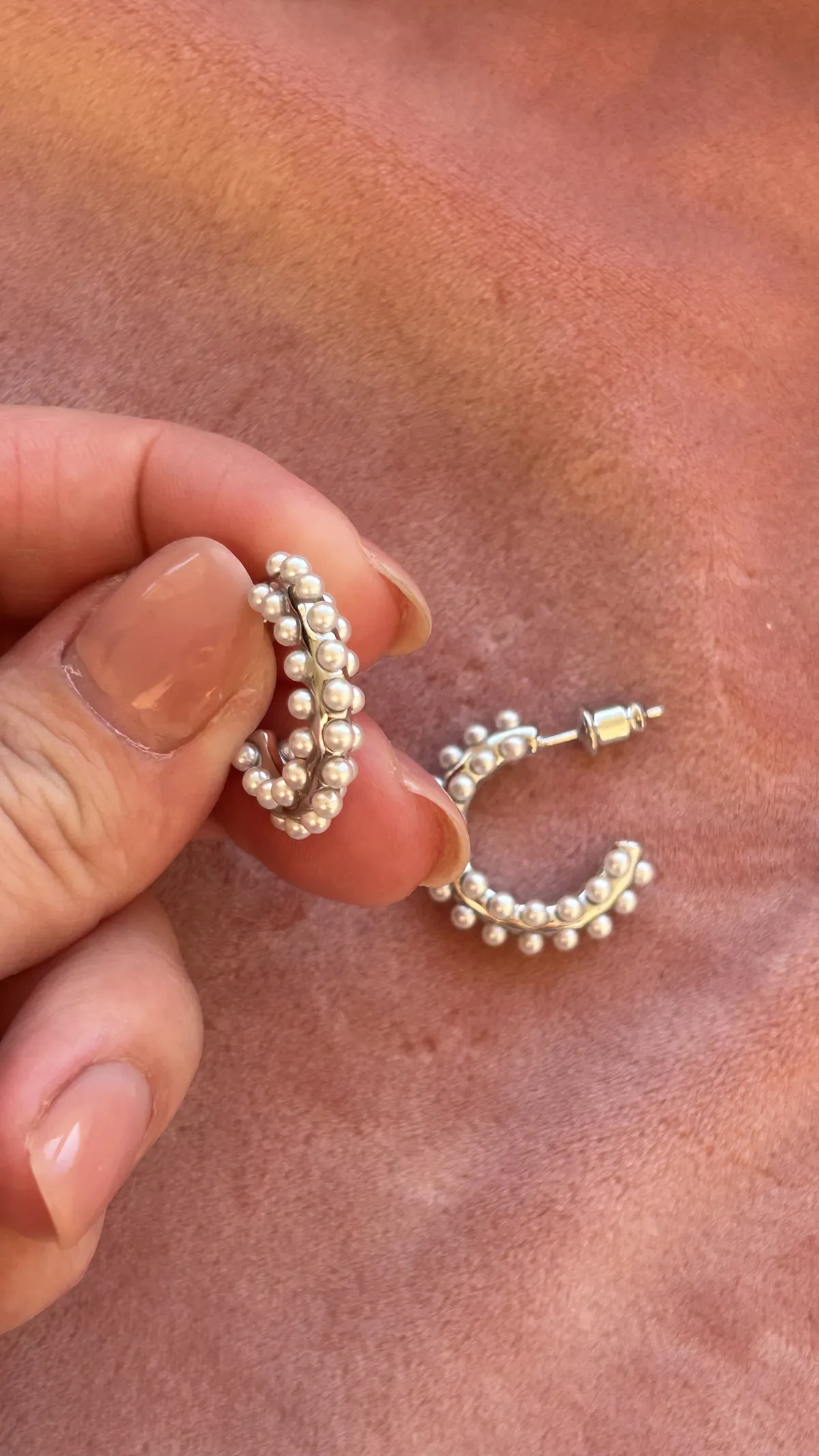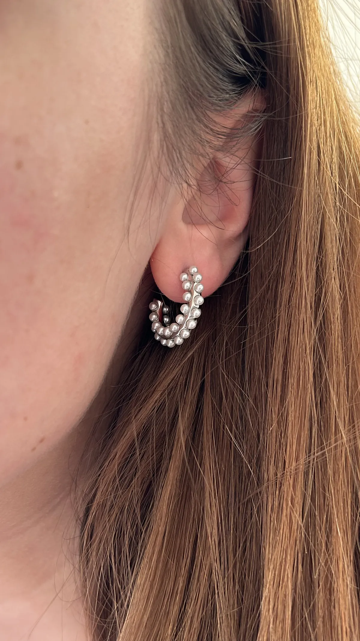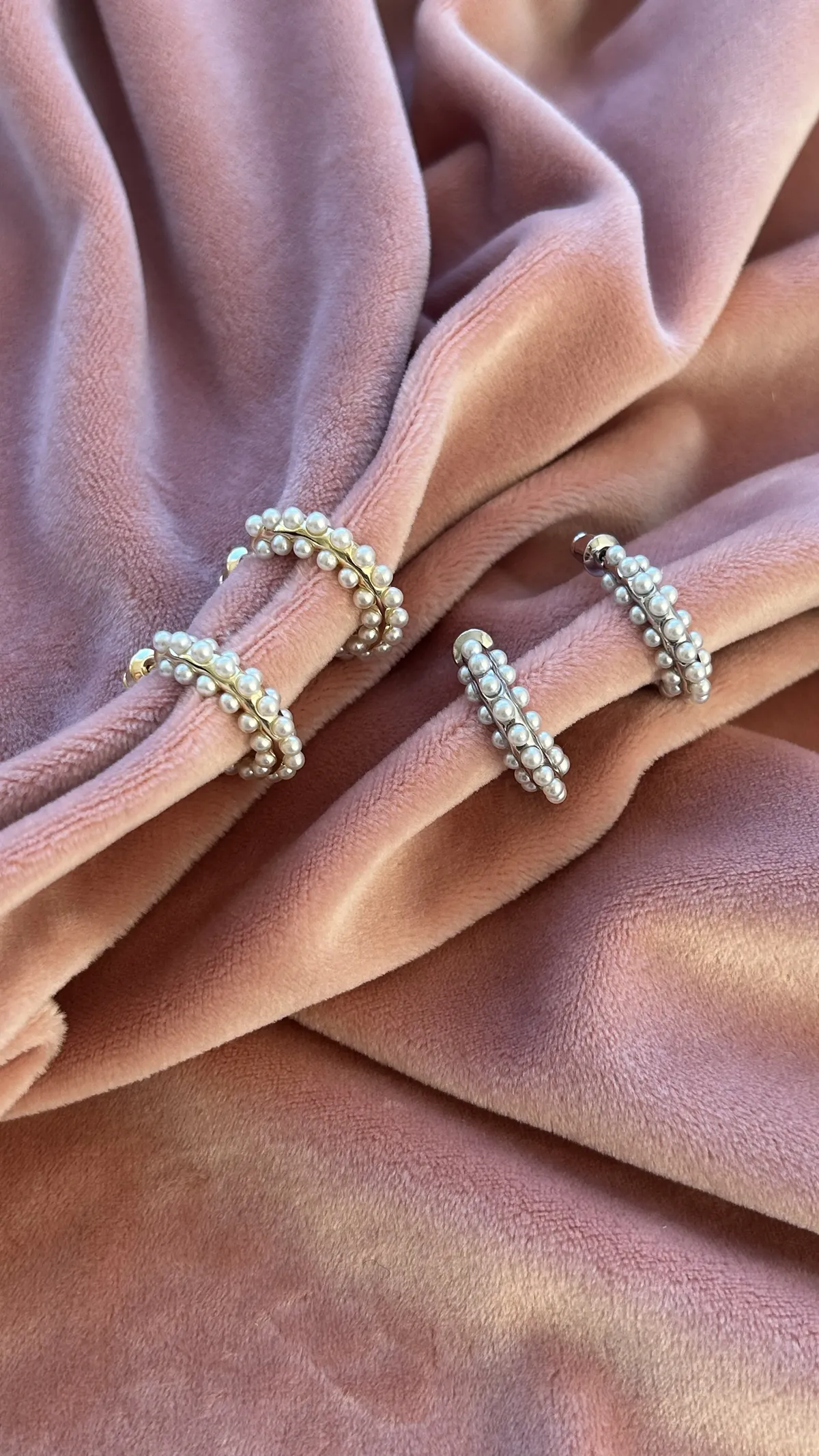 Объемная серьга-кольцо, украшенная множеством миниатюрных жемчужин. Дизайн имитирует мягкое движение морской волны, а жемчуг добавляет романтичности и легкости.