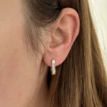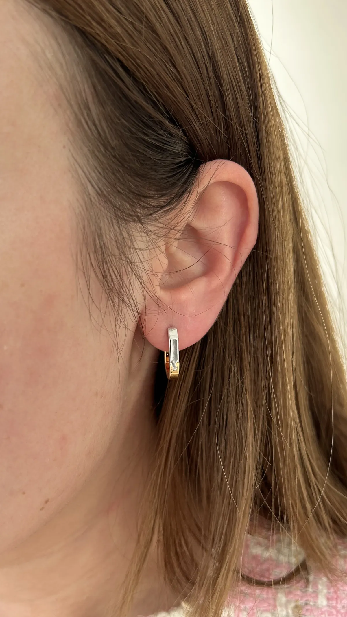 Биколорные серьги можно носить разными сторонами и дополнять подвесками золотыми или серебрянными.
