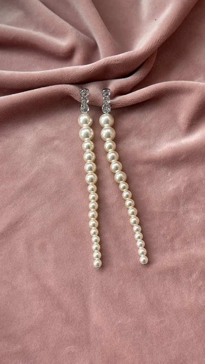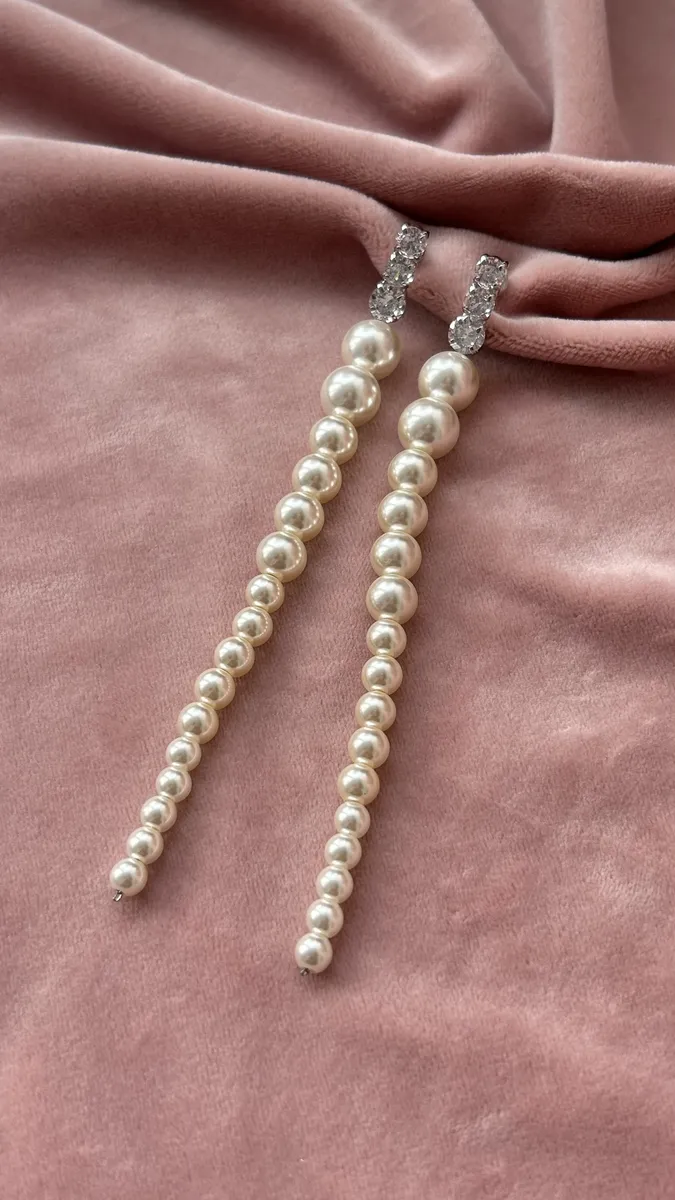 Серьги Вечерние со стразами и жемчугом